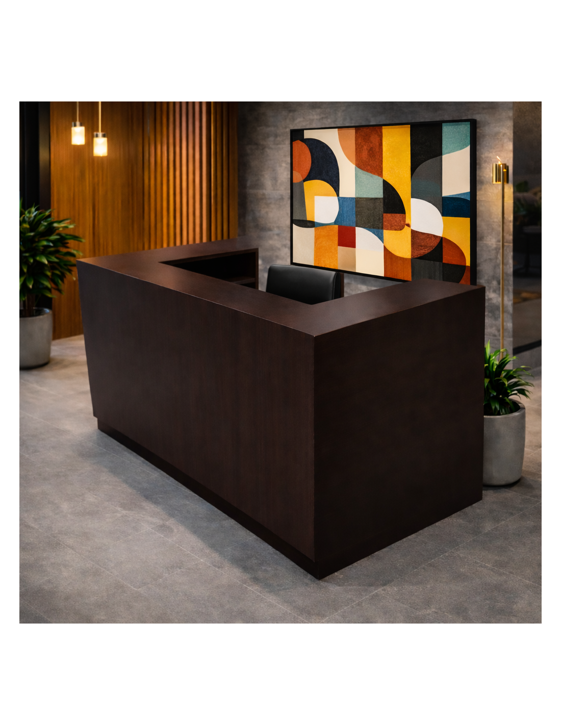 Maximiza la funcionalidad y el estilo de tu área de recepción con el Mostrador Recepción Forbes 160, diseñado para ofrecer personalización completa y una presencia impresionante.