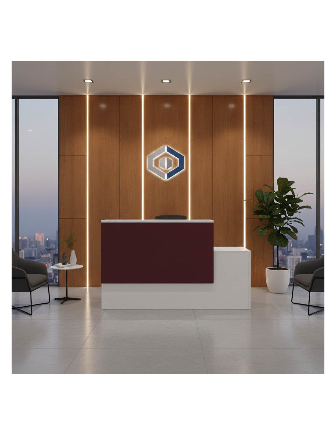 Eleva el estilo y la funcionalidad de tu área de recepción con el Mostrador Recepción Jabel Mini 120, diseñado para espacios limitados pero con grandes expectativas de diseño y servicio.