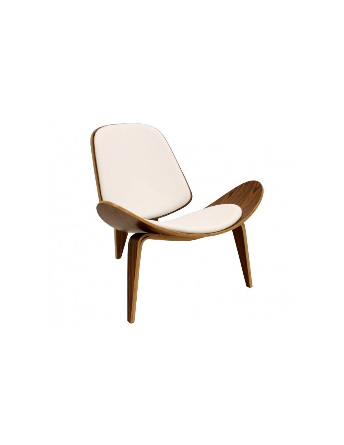 Su estructura de armazón de madera, disponible en acabados de fresno o palo rosa, evoca un estilo atemporal que se complementa perfectamente con la modernidad de sus tapizados. El pad de asiento y respaldo, cuidadosamente tapizados en piel y simipiel regenerada blanca, no solo añade un nivel de confort inigualable, sino que también introduce una textura rica y sofisticada a la pieza.