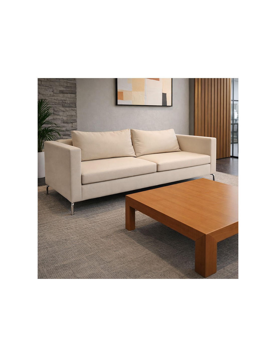 Su diseño único, que combina un respaldo bajo con cojines dispuestos según la preferencia del usuario, permite sentarse cómodamente en diversas posiciones. Fabricado con una estructura de madera de primera calidad y espumas de alta densidad, garantiza durabilidad y confort durante años. Tapizado en tejidos especiales para contract y equipado con patas en tubo de acero de 20 con tacos antideslizantes, el sofá Yappo es una elección elegante y funcional para cualquier hogar. Disponible en versiones de una, dos o tres plazas, se adapta perfectamente a tus necesidades y estilo de vida.