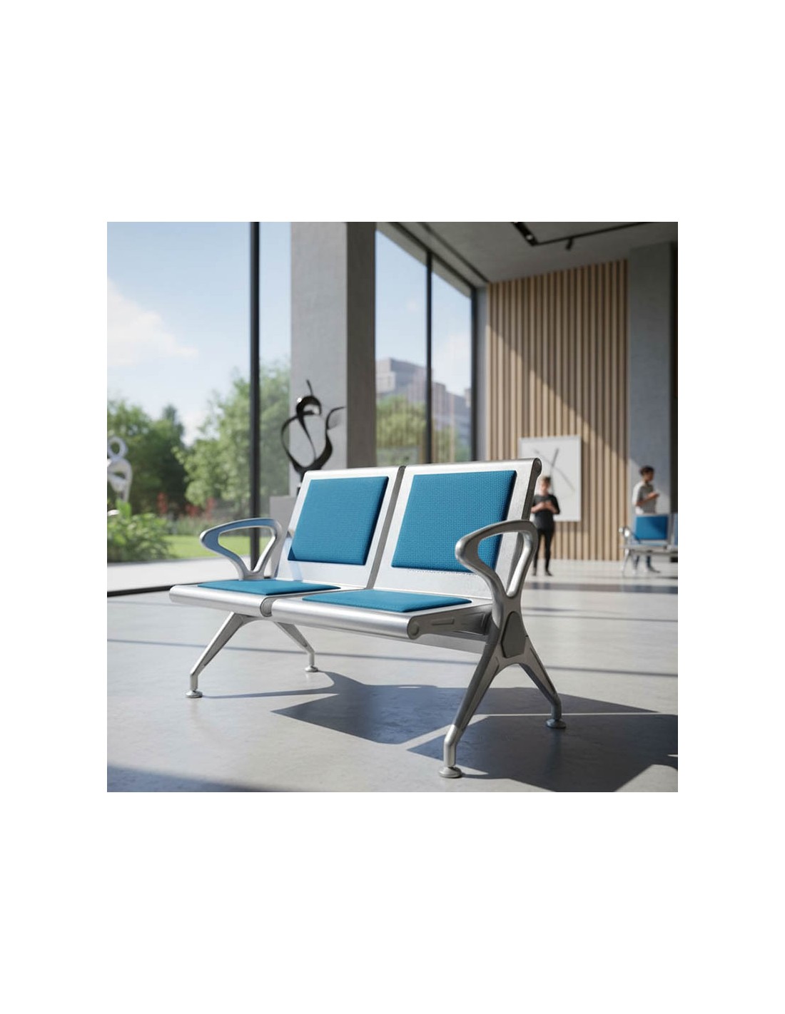 Innovación y confort se unen en la Bancada Bryce Confort, con 2 plazas y 1 mesa, diseñada para espacios interiores modernos y funcionales.