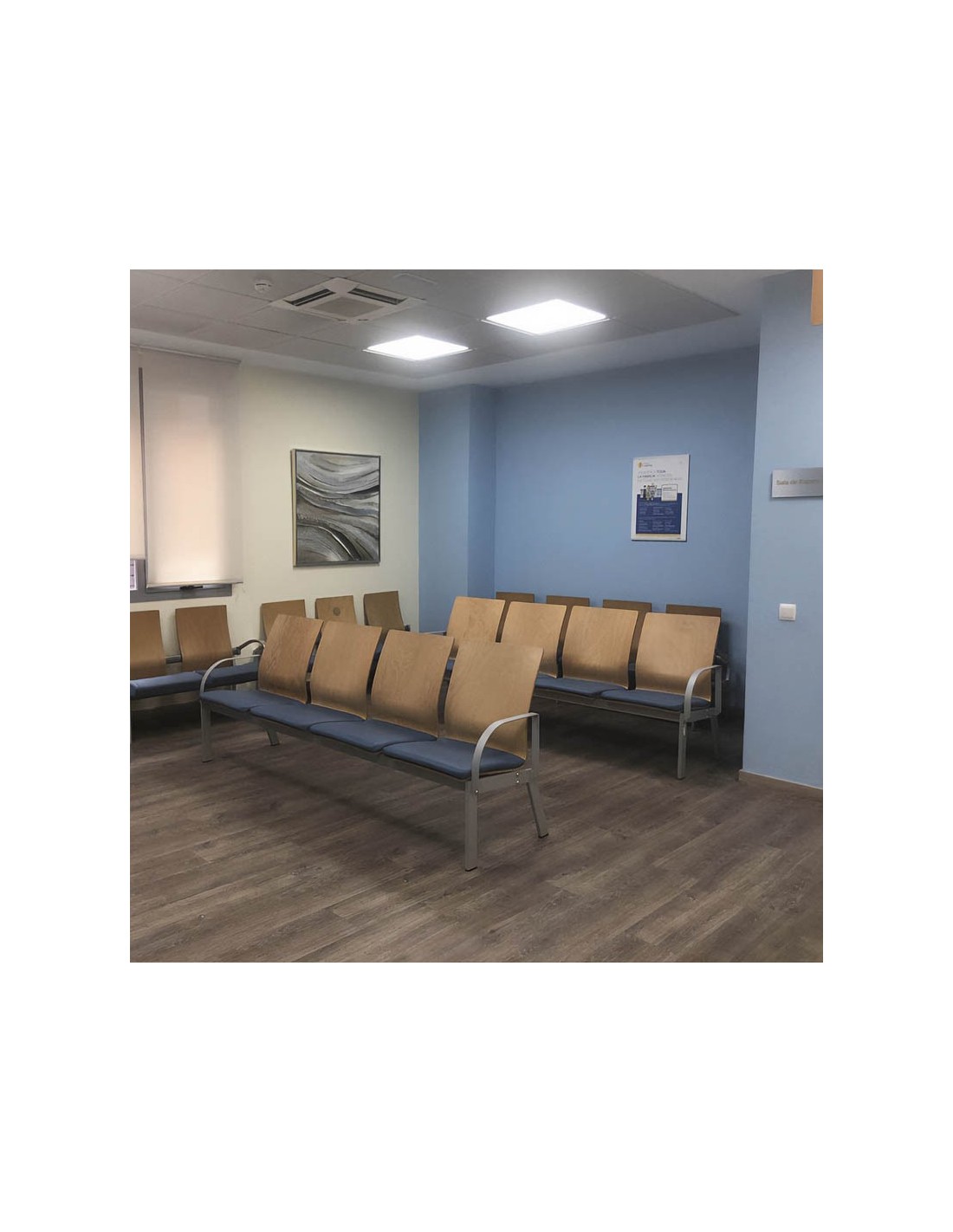 Diseñada con una atención meticulosa al detalle, esta bancada incorpora asientos y respaldos de contrachapado de madera de haya barnizada, ofreciendo no solo un aspecto natural y refinado, sino también una ergonomía superior para quienes la utilizan.