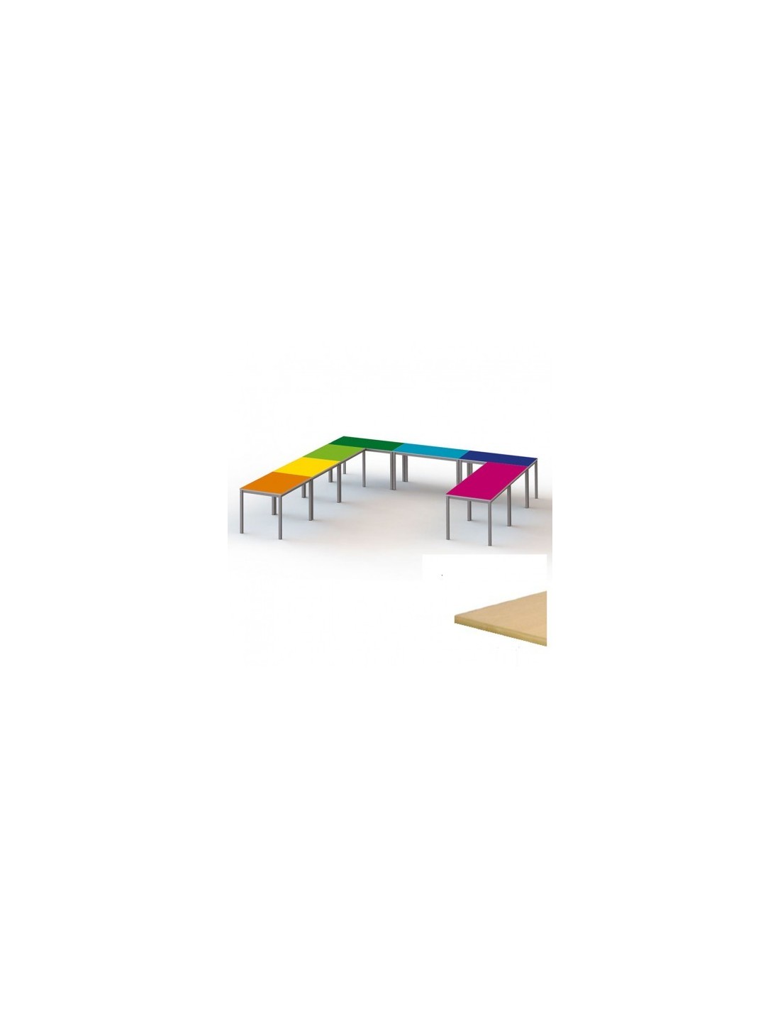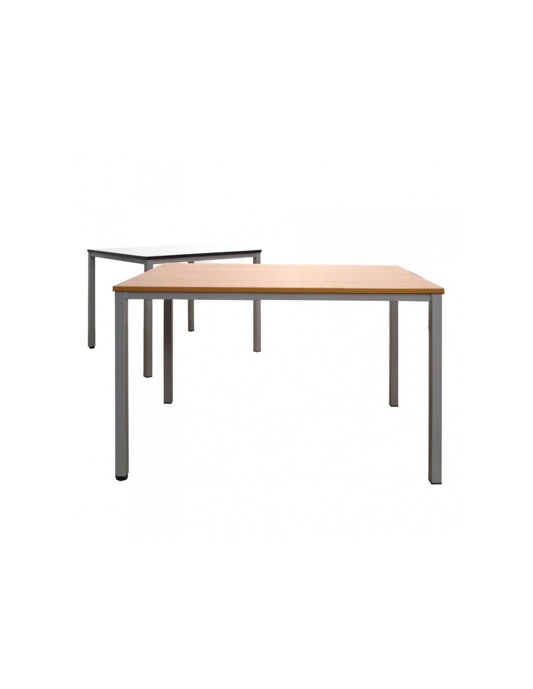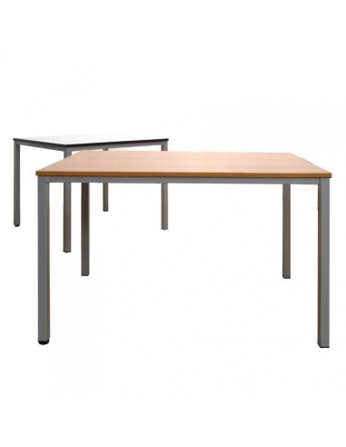Mesa Roma Melamina, con patas de acero y encimera de melamina de 20 mm. Disponible en negro, gris y blanco, con múltiples tamaños. Ideal para oficinas y salas de reuniones.