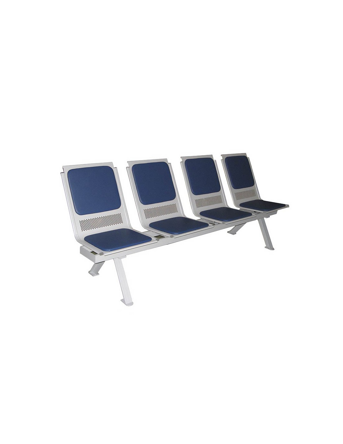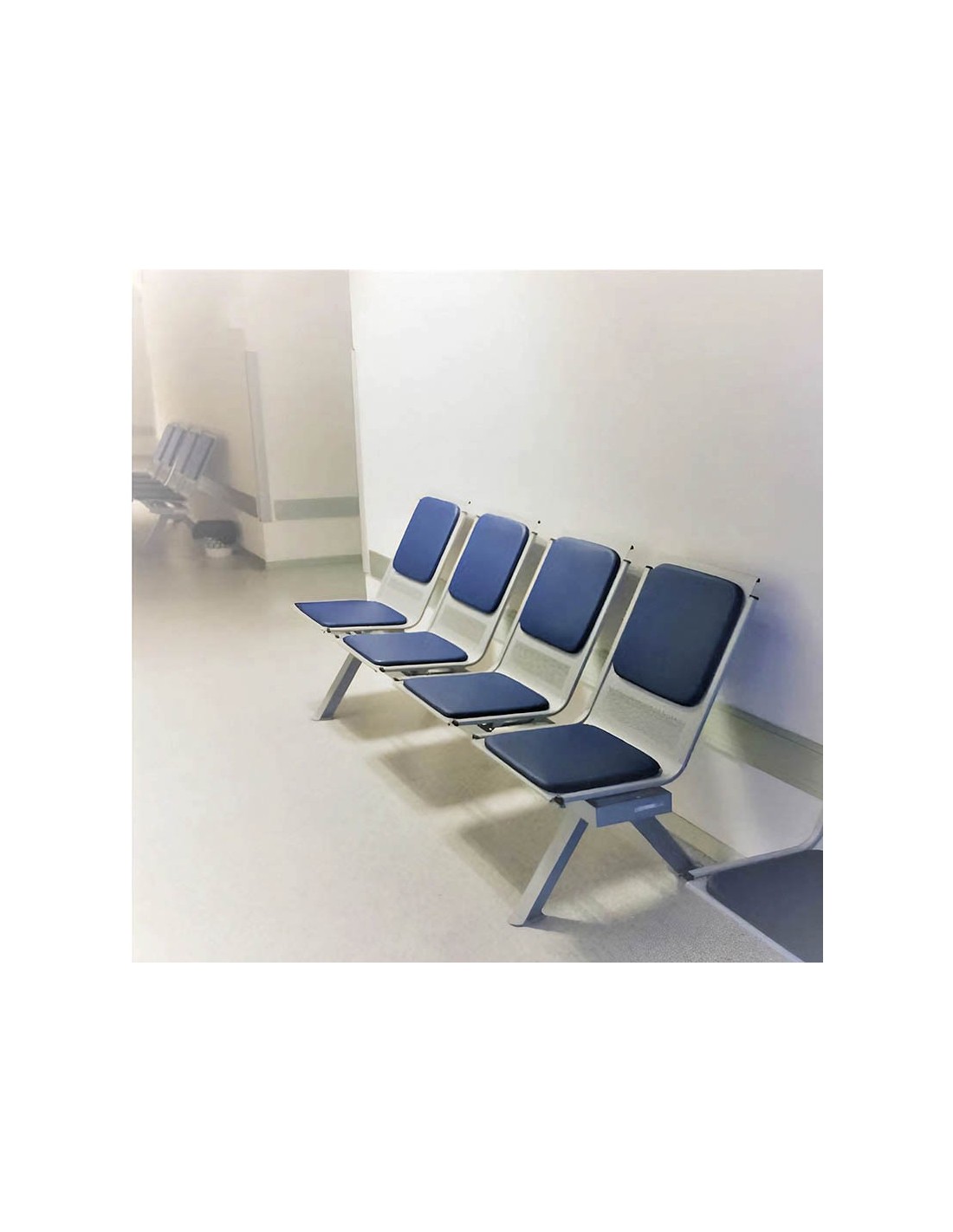 Cada asiento cuenta con una galleta tapizada que proporciona un confort excepcional, ideal para largas horas de espera en aeropuertos, hospitales, o centros de servicio. El acabado en epoxi color gris aluminio RAL 9006 texturado no solo mejora la estética de la bancada sino que también protege contra el desgaste y la corrosión.