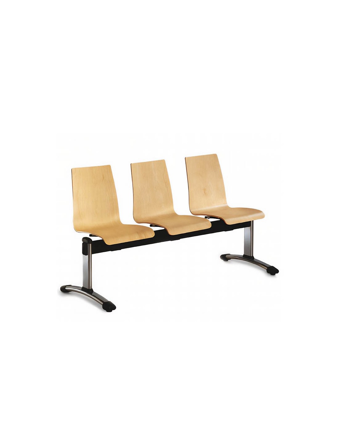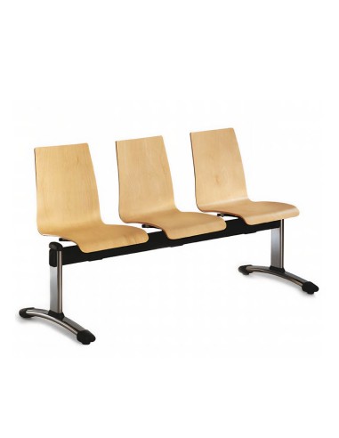 Descubre la elegancia y comodidad de la Bancada Berlín New 5 Plazas, diseñada con asientos de madera de haya barnizada y estructura de acero robusta, ideal para espacios profesionales y de espera.