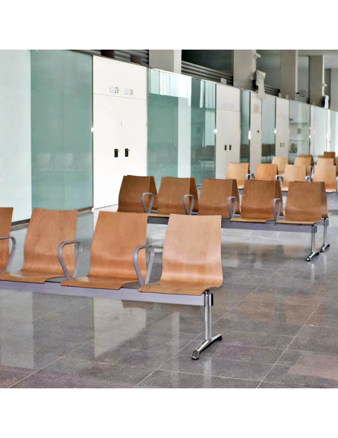 Descubre la elegancia y comodidad de la Bancada Berlín New 5 Plazas, diseñada con asientos de madera de haya barnizada y estructura de acero robusta, ideal para espacios profesionales y de espera.
