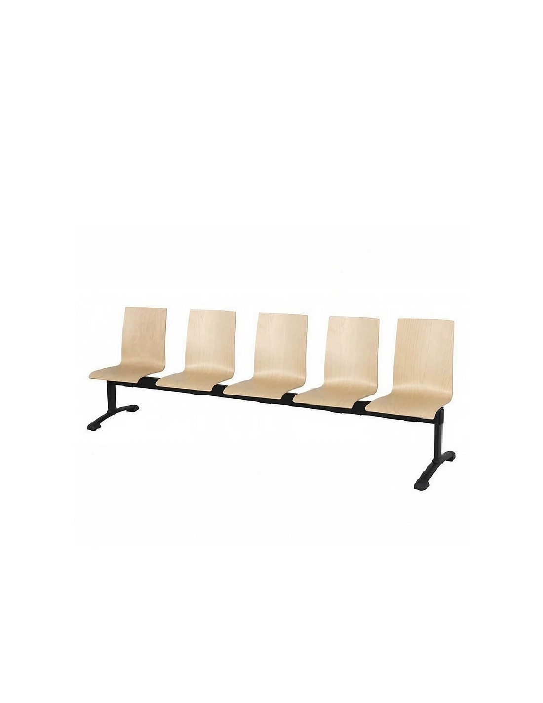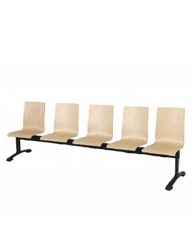 Descubre la elegancia y comodidad de la Bancada Berlín New 5 Plazas, diseñada con asientos de madera de haya barnizada y estructura de acero robusta, ideal para espacios profesionales y de espera.
