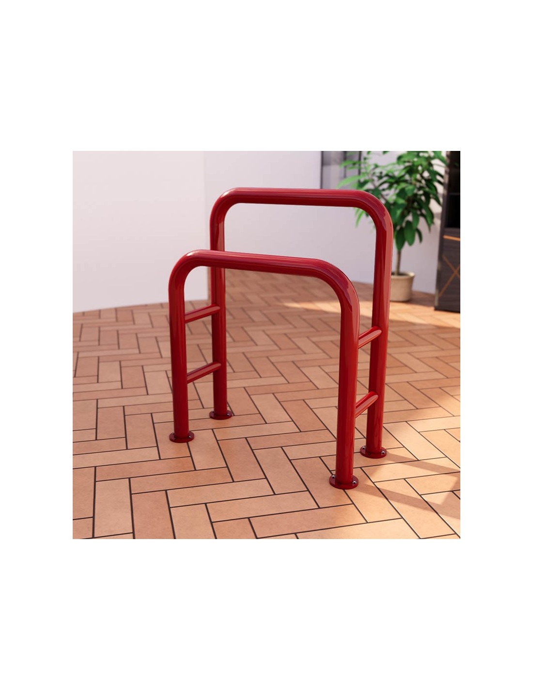 Banco de apoyo isquiático simple con anclaje al suelo, diseñado para ofrecer un punto de descanso cómodo sin necesidad de sentarse. Altura aproximada de 98 cm, fondo de 37 cm y anchos disponibles entre 80 y 150 cm.