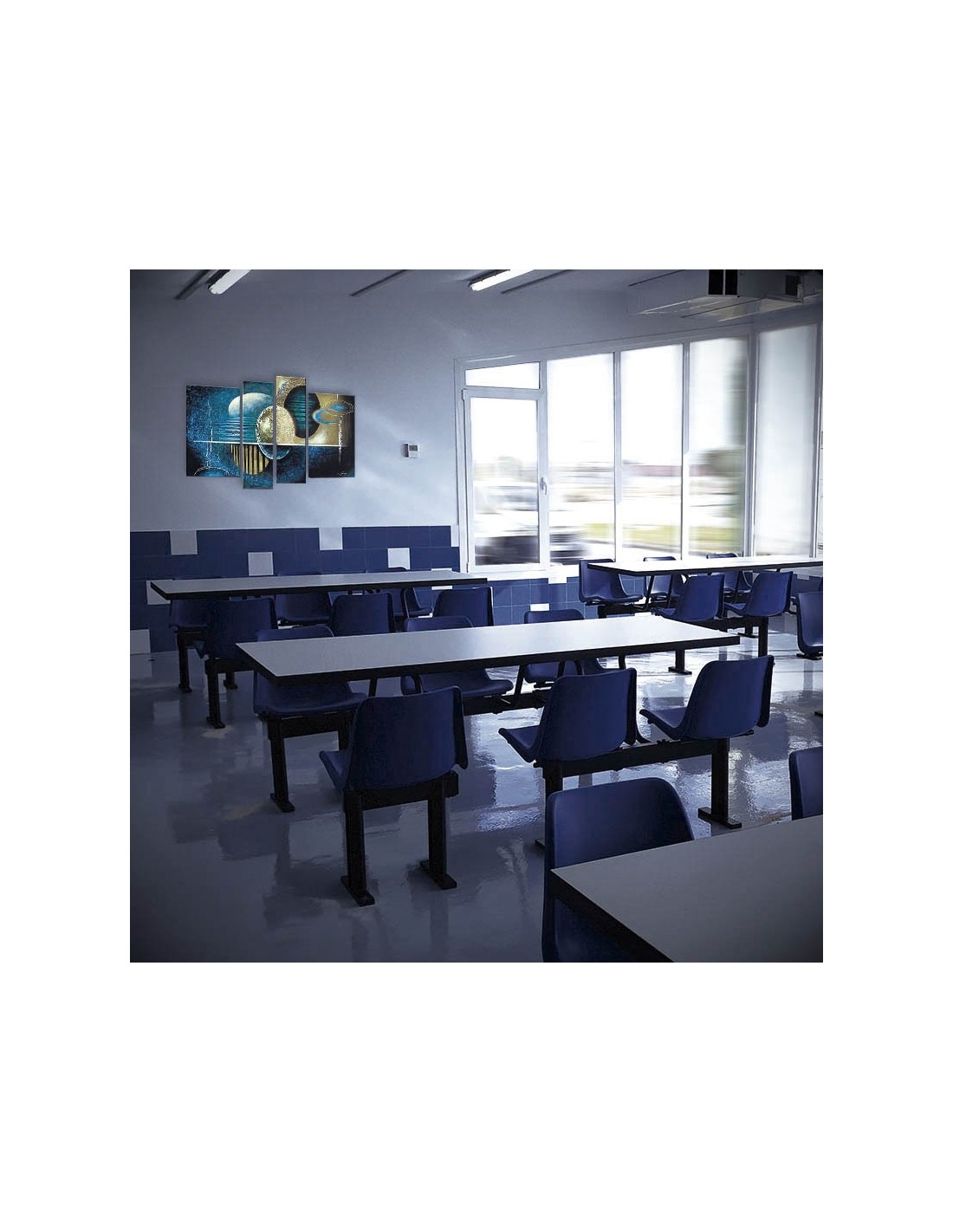 - Optimización de Espacios: Con módulos de 2, 4 o 6 plazas, este sistema de asientos fijos es ideal para maximizar el uso del espacio en comedores y áreas públicas.