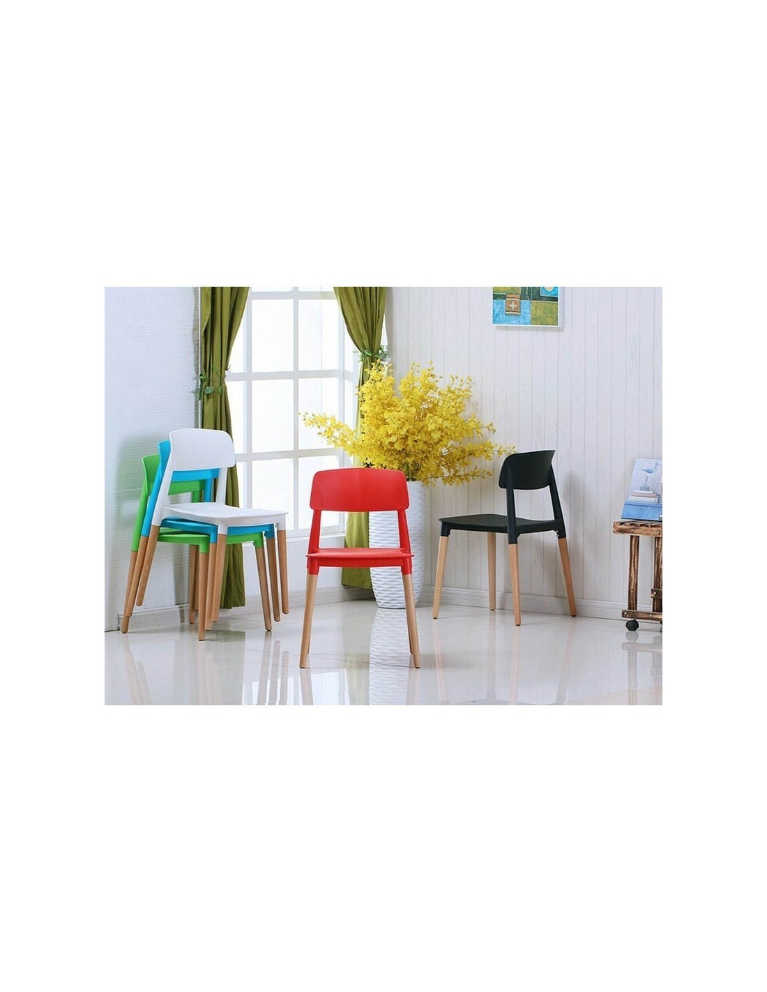 La Silla Crucero es una opción ideal para espacios que requieren versatilidad y estilo. Fácilmente apilable, con asiento y respaldo de polipropileno en colores como gris grafito, blanco, azul, rojo y negro, se adapta a cualquier entorno interior. Sus patas de madera de haya añaden un toque natural y elegante, y la posibilidad de combinarla con mesas a juego facilita la creación de un conjunto armonioso.