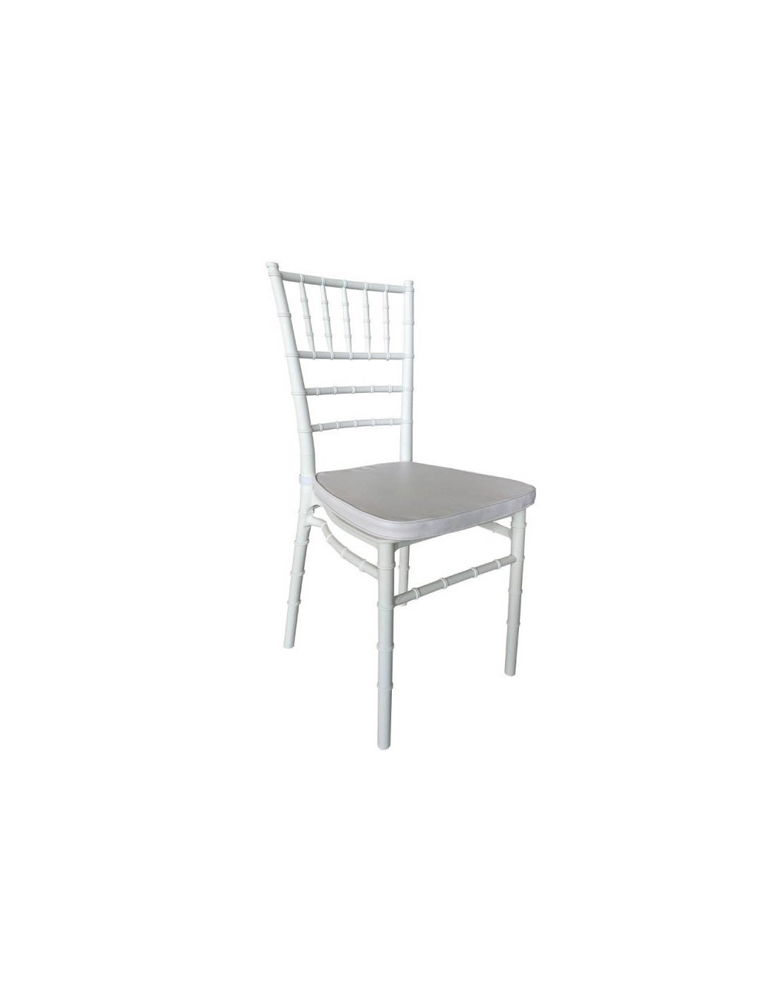 Descubre la Silla Génova, un diseño apilable en polipropileno blanco ideal para eventos y hostelería. Resistente, con opción de cojín de asiento burdeos.