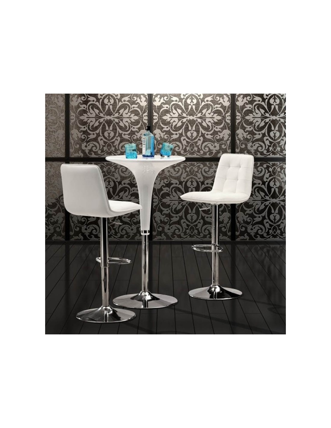 El Taburete Odisea, con su estructura metálica cromada y asiento en similpiel, combina elegancia moderna con ajuste de altura para una experiencia de asiento superior en cualquier interior.