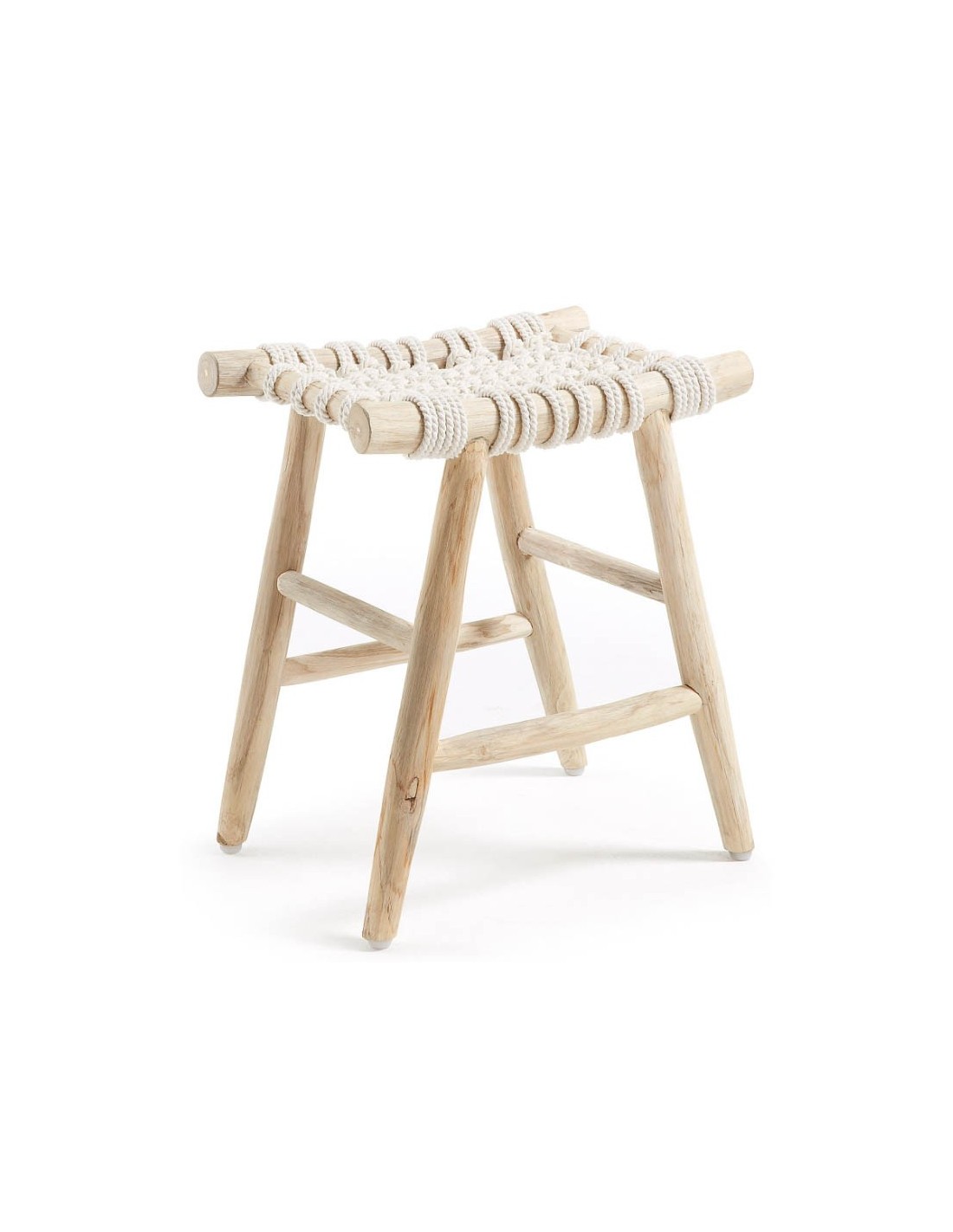 Taburete Karnak: Encanto Natural y Artesanía en Teca y Algodón