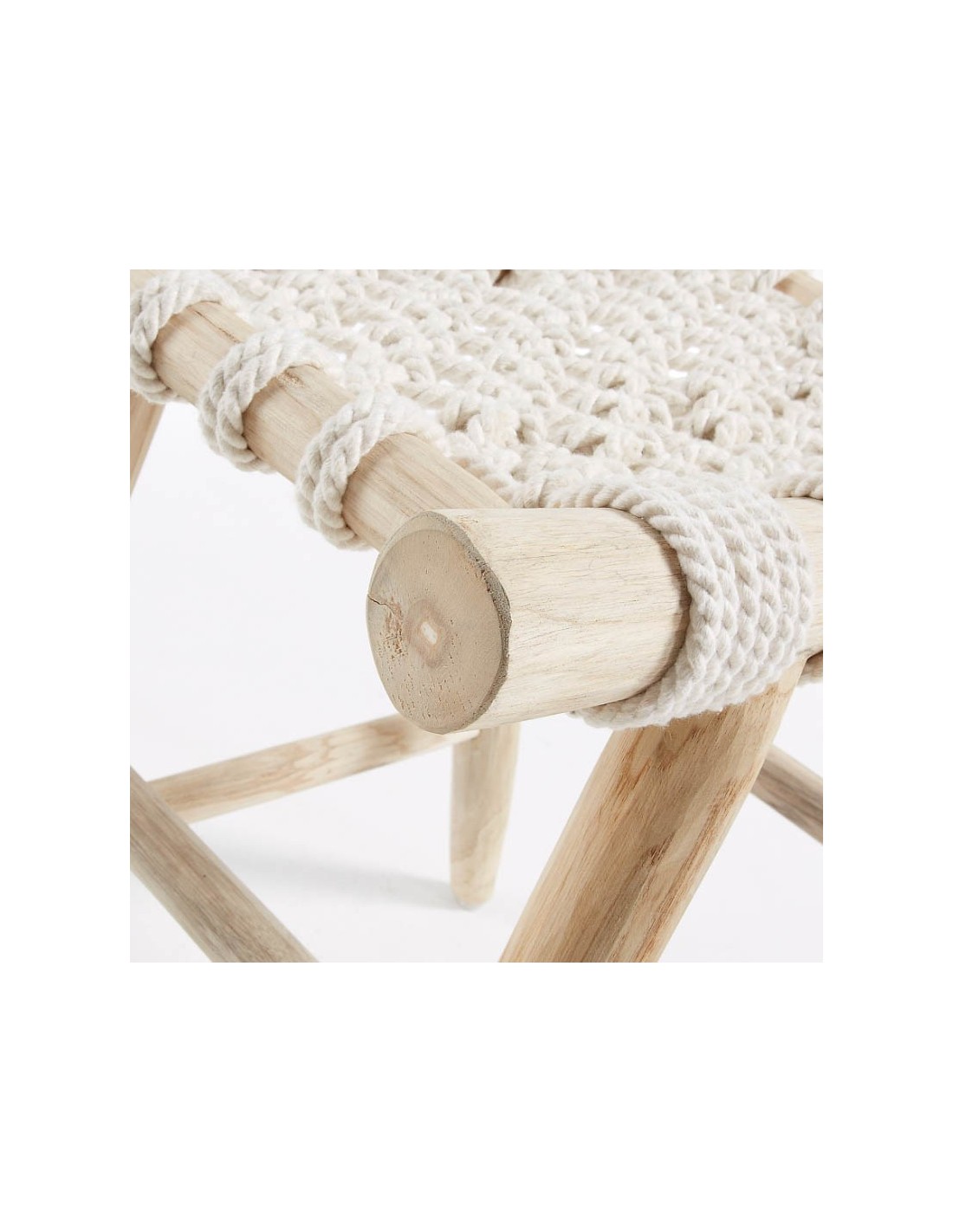 Este taburete no solo destaca por su estructura de ramas de teca natural, que le confiere una robustez y una estética única, sino también por su asiento tejido en cuerda de algodón de color blanco, ofreciendo una superficie de descanso suave y acogedora. Perfecto para aquellos que valoran la calidad, la sostenibilidad y el diseño con un toque personal, el Taburete Karnak se integra armoniosamente en cualquier espacio interior, desde ambientes rústicos hasta contemporáneos, aportando calidez y textura. Sin necesidad de montaje y diseñado como una pieza no apilable, este taburete es una solución práctica y estilística que se adapta fácilmente a diversas necesidades decorativas, sirviendo como asiento adicional, pieza decorativa o incluso como soporte para plantas.