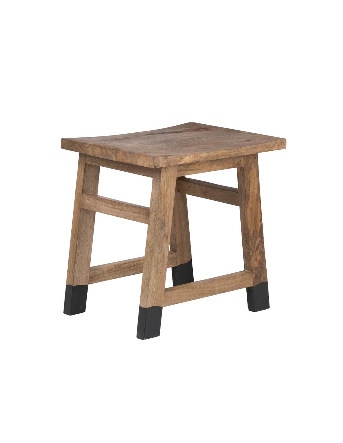 Taburete Crazy Clay, una obra maestra de diseño que celebra la belleza de la madera natural maciza y el encanto del acabado envejecido.