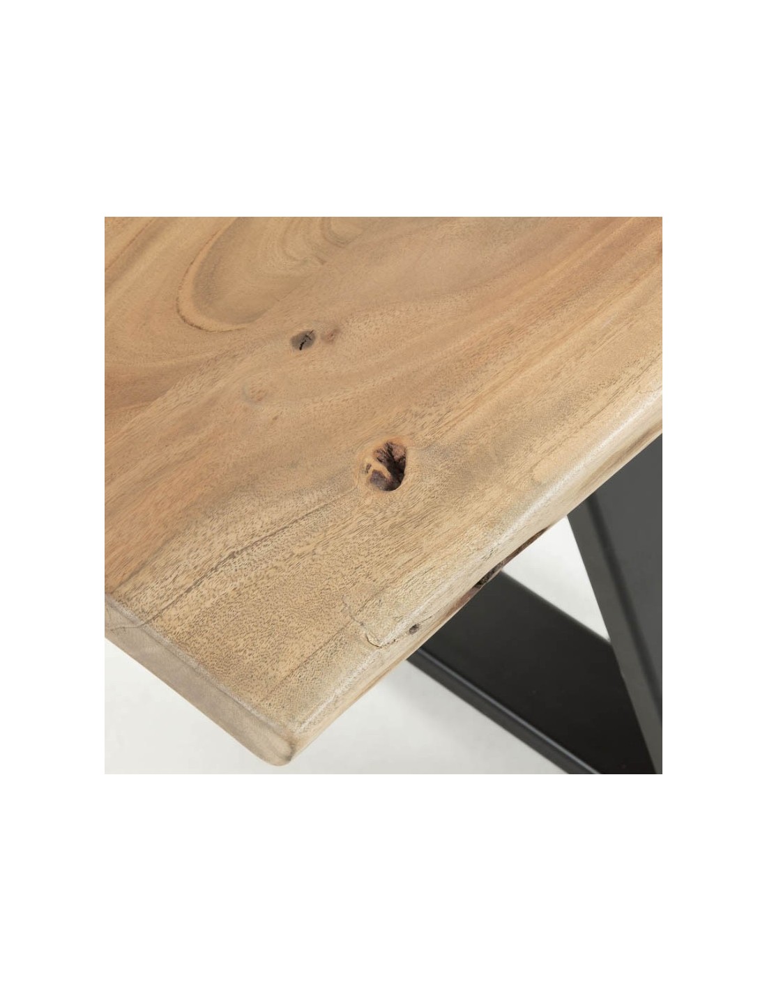 Su sobre está elaborado en madera de acacia natural maciza, que no solo le brinda un aspecto elegante, sino también una resistencia excepcional. Las patas de metal complementan su diseño y aseguran la estabilidad.