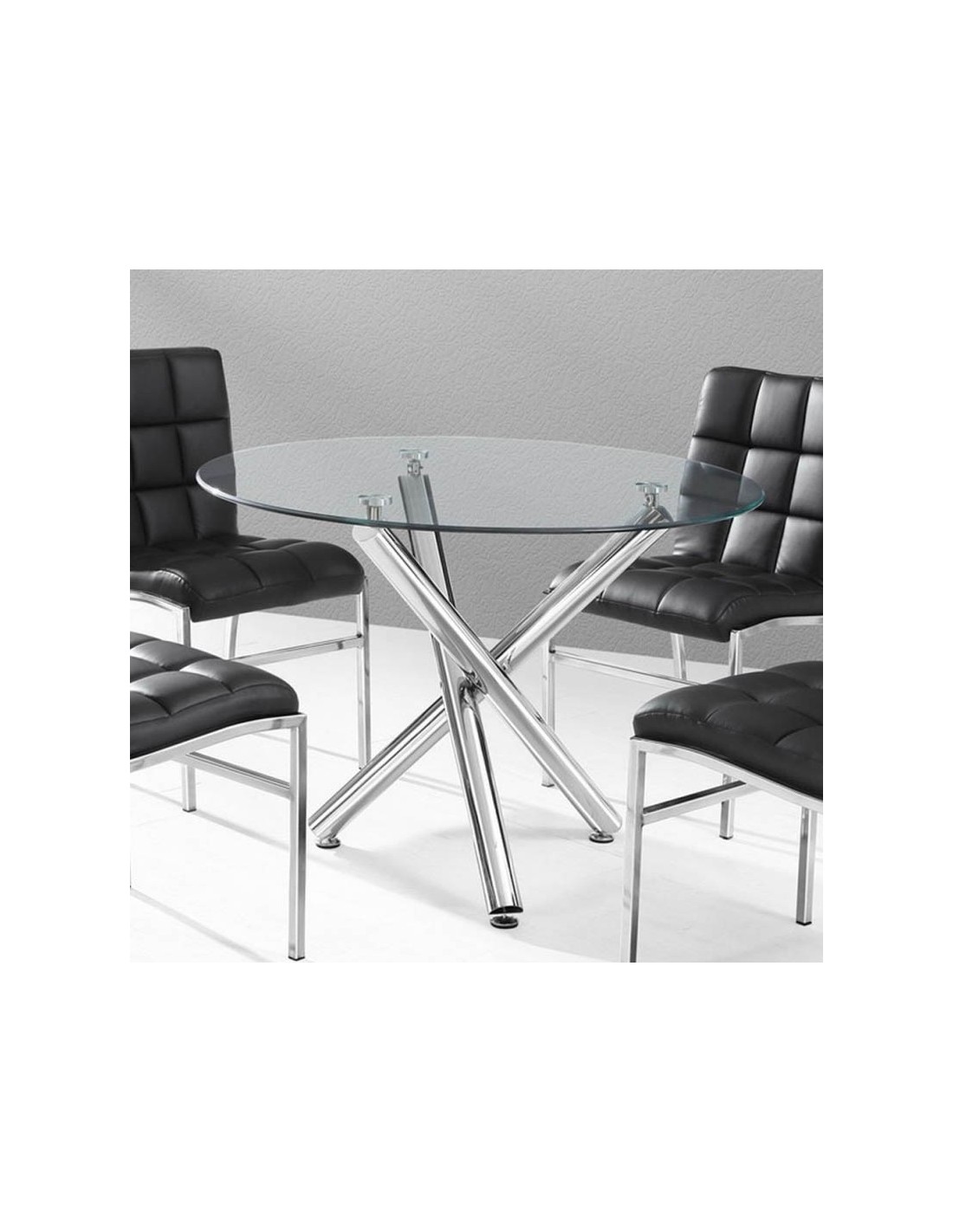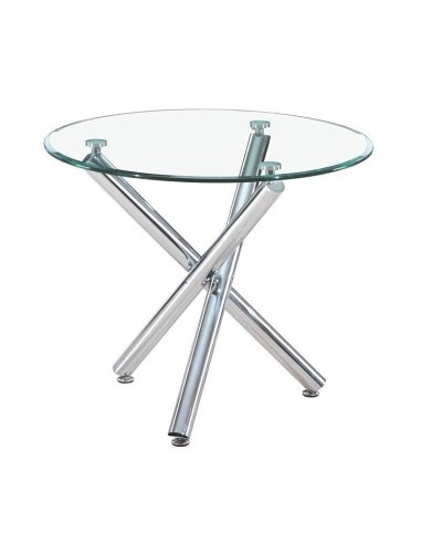 Con una estructura tubular cromada y una tapa de cristal templado, esta mesa combina estética y funcionalidad, siendo ideal para diversas aplicaciones, desde comedores hasta oficinas.