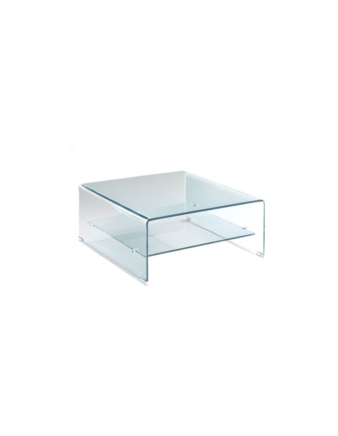 Fabricada íntegramente de cristal curvado con un acabado transparente, esta mesa combina estética y funcionalidad. Su estante inferior, también de cristal, añade un nivel extra de almacenamiento práctico sin comprometer el diseño minimalista.