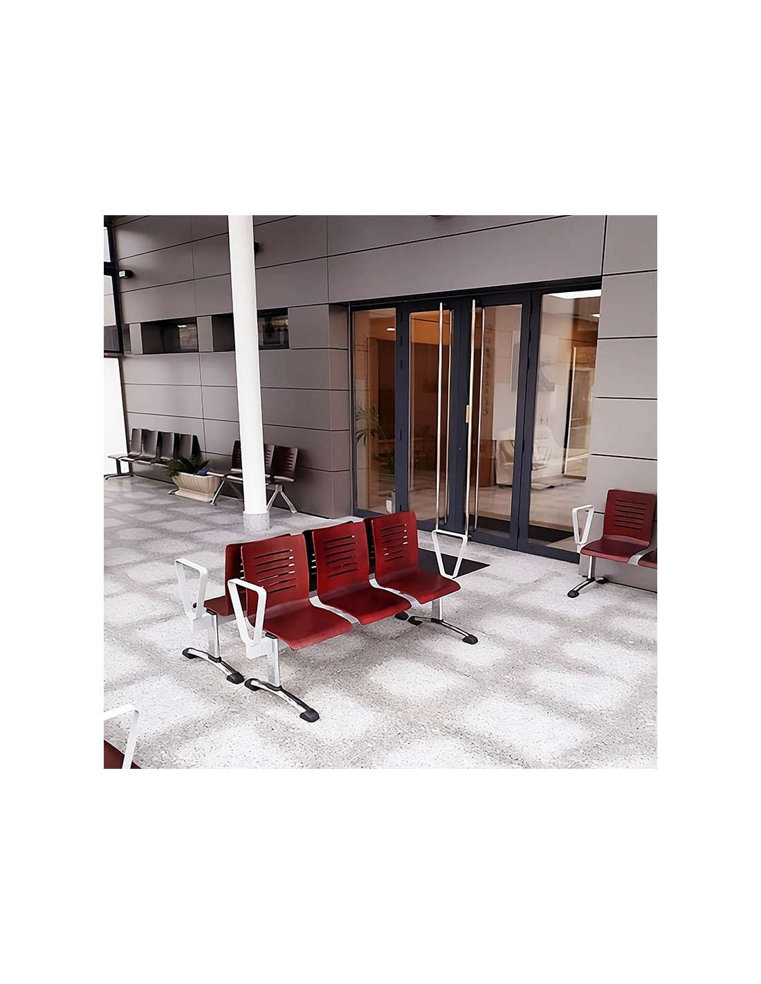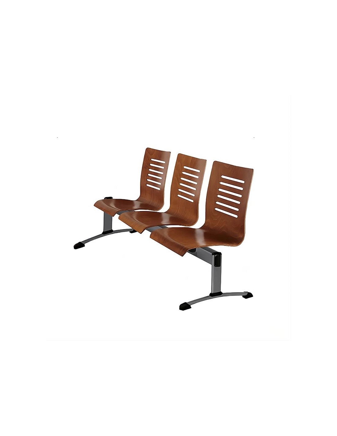 Presentamos la bancada Aneto 4 plazas con acabados de madera barnizada y estructura metálica. Ideal para espacios que requieren un estilo moderno y durabilidad. Ideal para zonas públicas y salas de espera.