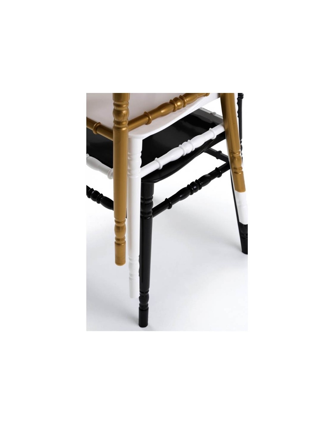 La Silla Amanda, en polipropileno dorado o blanco, combina resistencia y estilo, ideal para catering, eventos y uso doméstico, con opción de cojín para mayor comodidad.