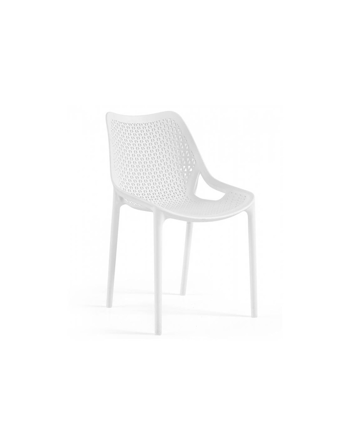 Silla fabricada en polipropileno reforzado con fibra de vidrio, resistente a los rayos UV y disponible en diferentes colores.