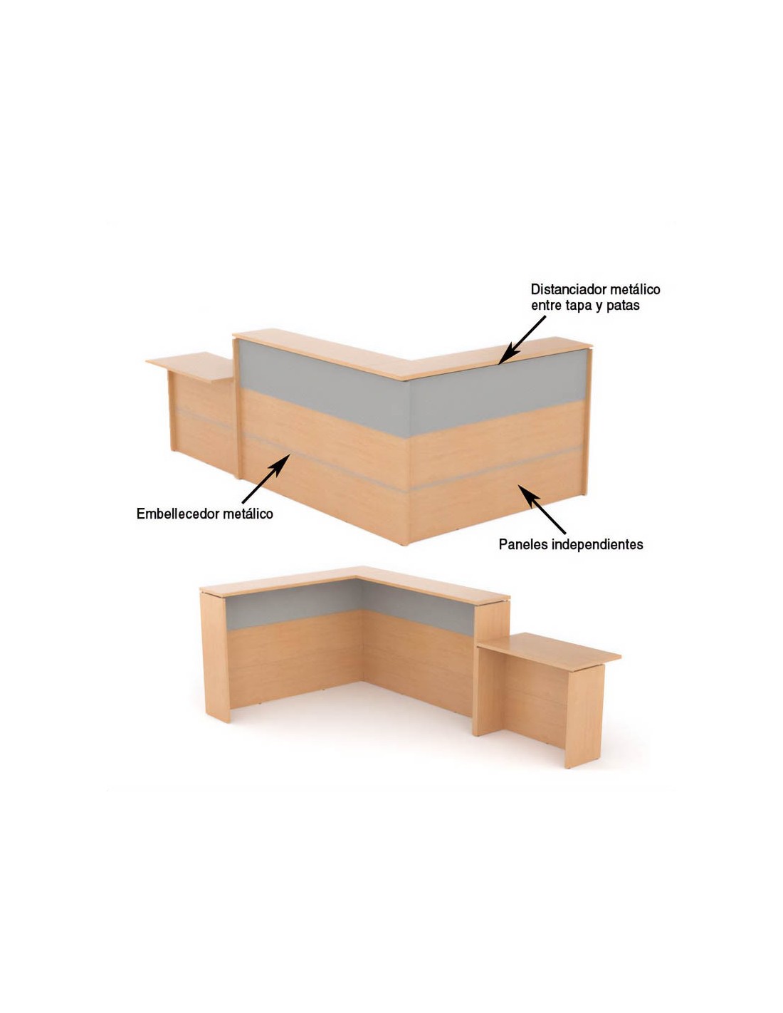Mejora la imagen de tu recepción con el Mostrador Recepción Florida 2060, diseñado para ofrecer durabilidad, funcionalidad y un diseño sofisticado que eleva la imagen de tu negocio.