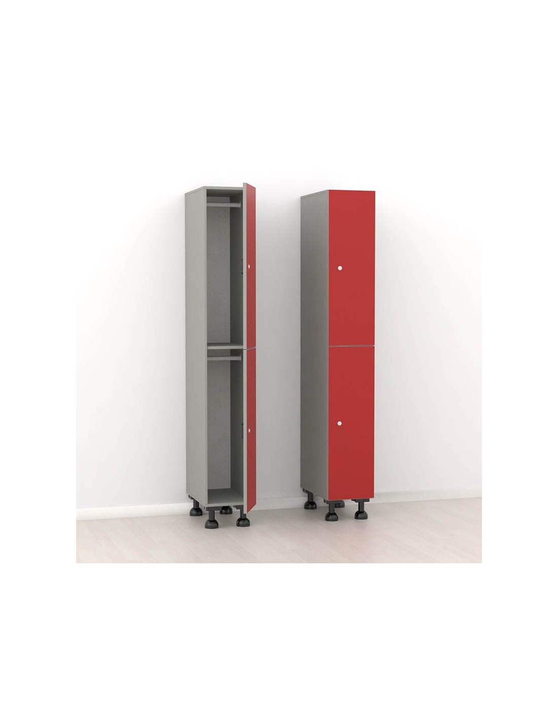 La Taquilla 2P Melamina / Melamina está diseñada para ofrecer una solución de almacenamiento eficiente, duradera y resistente en una variedad de entornos, como gimnasios, hospitales, supermercados y piscinas públicas. Fabricada con melamina hidrófuga, esta taquilla proporciona una solución práctica y robusta para el almacenamiento seguro y organizado.
