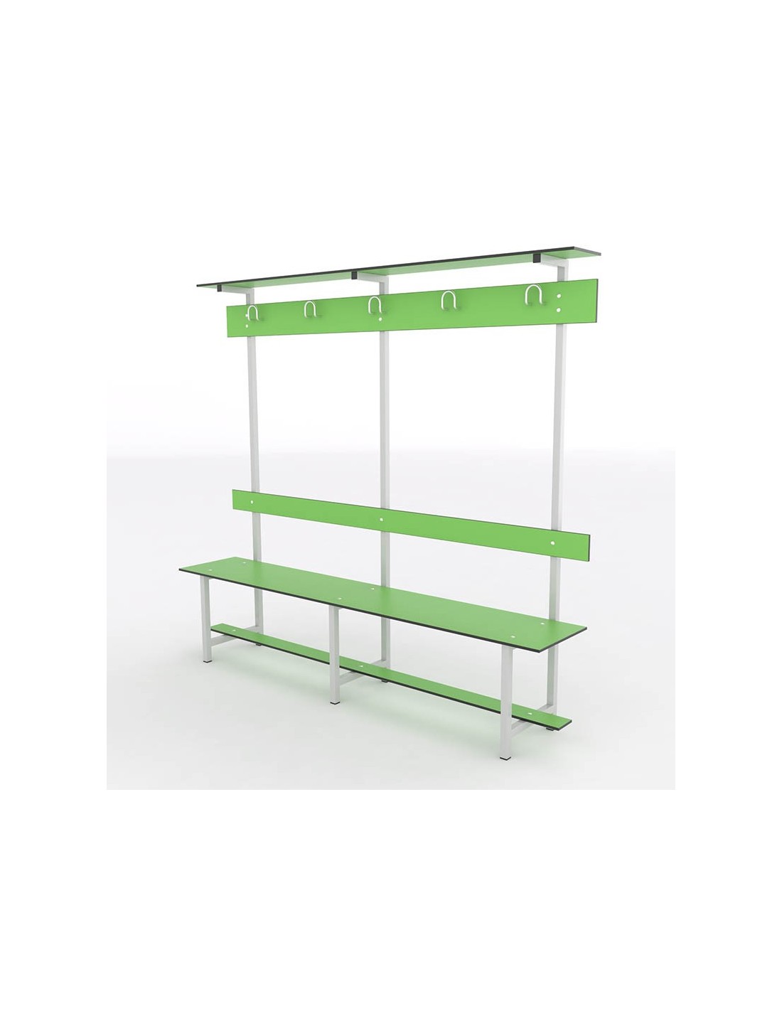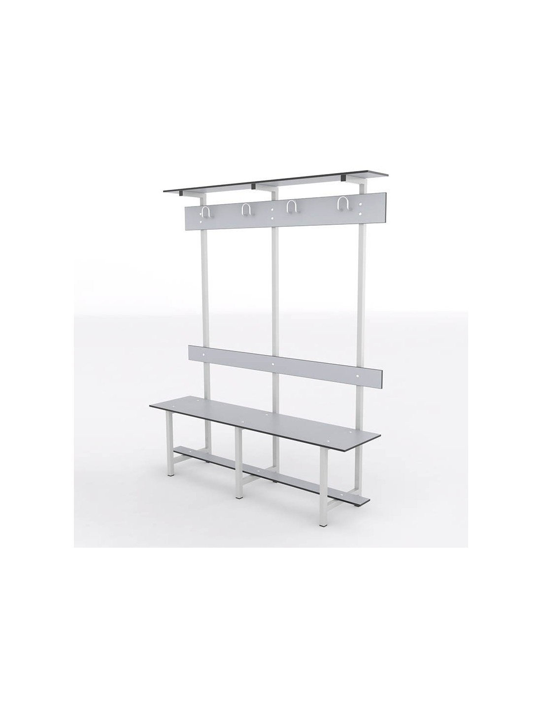 Optimiza tu vestuario con nuestro Banco Sencillo Respaldo Perchero y Zapatero Compacto, diseñado para ofrecer durabilidad, resistencia y funcionalidad adicional en gimnasios, hospitales, supermercados y piscinas públicas.