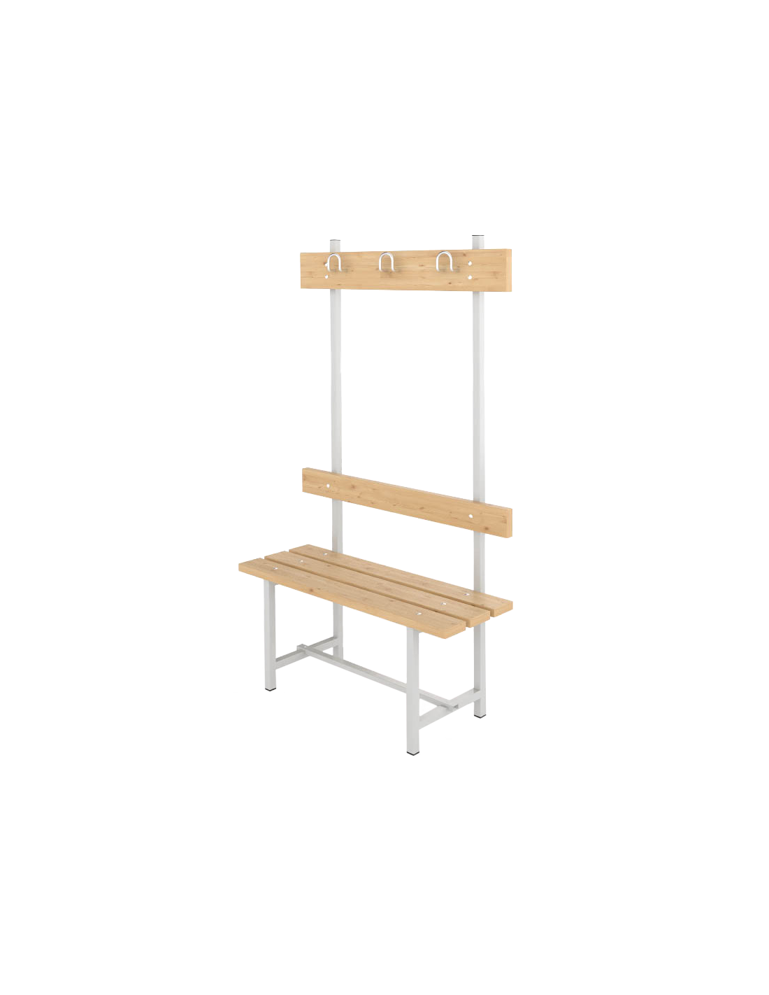 Optimiza tu vestuario con nuestro Banco Sencillo Zapatero Respaldo y Perchero de Pino, diseñado para ofrecer durabilidad, comodidad y fácil mantenimiento en gimnasios, hospitales, supermercados y piscinas públicas.
