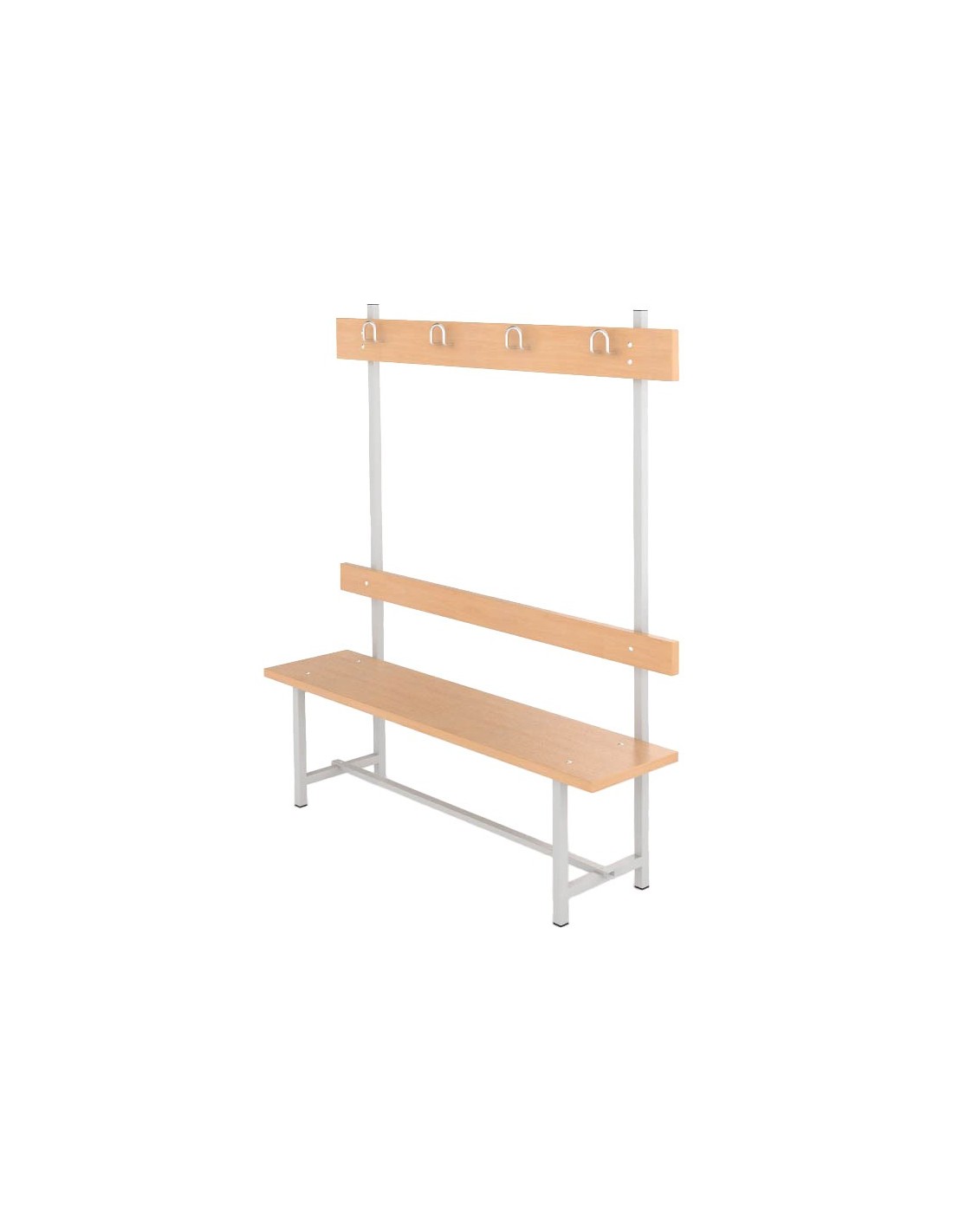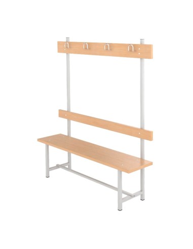 Optimiza tu vestuario con nuestro Banco Sencillo con Respaldo, Perchero y Sombrerero de Melamina, diseñado para ofrecer durabilidad, comodidad y fácil mantenimiento en gimnasios, hospitales, supermercados y piscinas públicas.