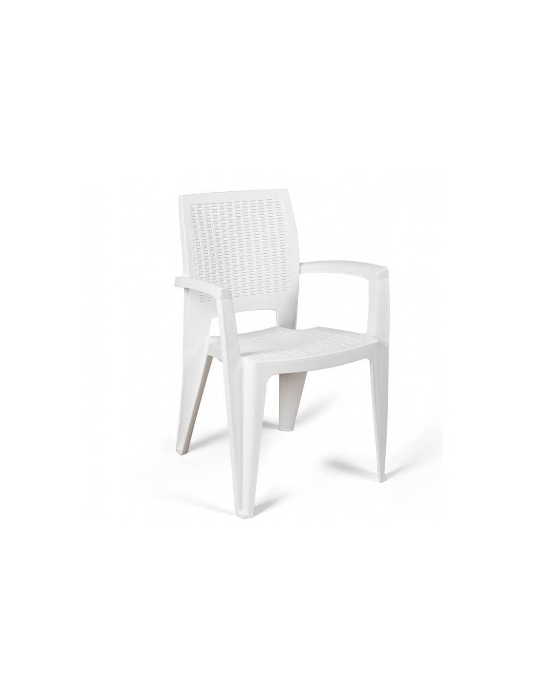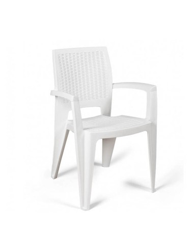 El Sillón Castello, realizado en monoblock de polipropileno de color, combina funcionalidad y estética. Su diseño apilable e imitación ratán en asiento y respaldo lo hacen ideal para exteriores, sin descartar su uso en interiores. Incorpora orificios para desagüe en el asiento, asegurando durabilidad y comodidad. Disponible en varios colores, se adapta a cualquier entorno.