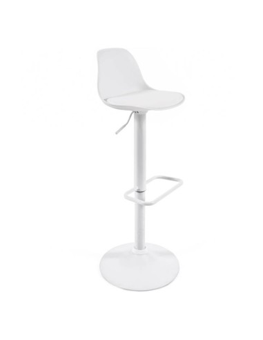 Este taburete, con su asiento de polipropileno cuidadosamente acolchado y revestido en piel sintética de alta calidad, está disponible en colores atemporales: blanco para una apariencia luminosa y espaciosa, o negro para una elegancia sobria y sofisticada. La base de acero en blanco mate no solo proporciona una estructura sólida y estable, sino que también añade un toque de modernidad y pureza al diseño. Equipado con un mecanismo de ajuste de altura, el Taburete Archie se adapta fácilmente a diferentes entornos y necesidades, desde barras de cocina hasta escritorios elevados, asegurando siempre la altura ideal para tu comodidad. Aunque no es apilable, su diseño elegante y la facilidad de mantenimiento, con solo necesitar un paño humedecido para la limpieza, lo convierten en una opción ideal para cualquier espacio interior, desde cocinas modernas hasta áreas de trabajo contemporáneas.