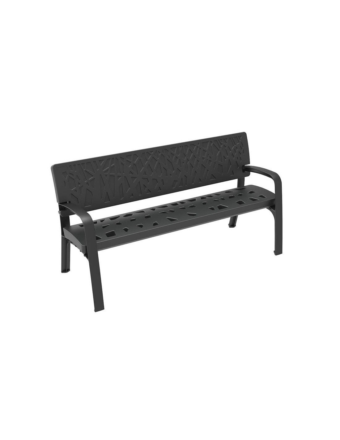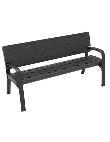 Banco fabricado en polietileno de alta calidad, ofrece durabilidad, resistencia a grafitis y bajo mantenimiento para espacios al aire libre.