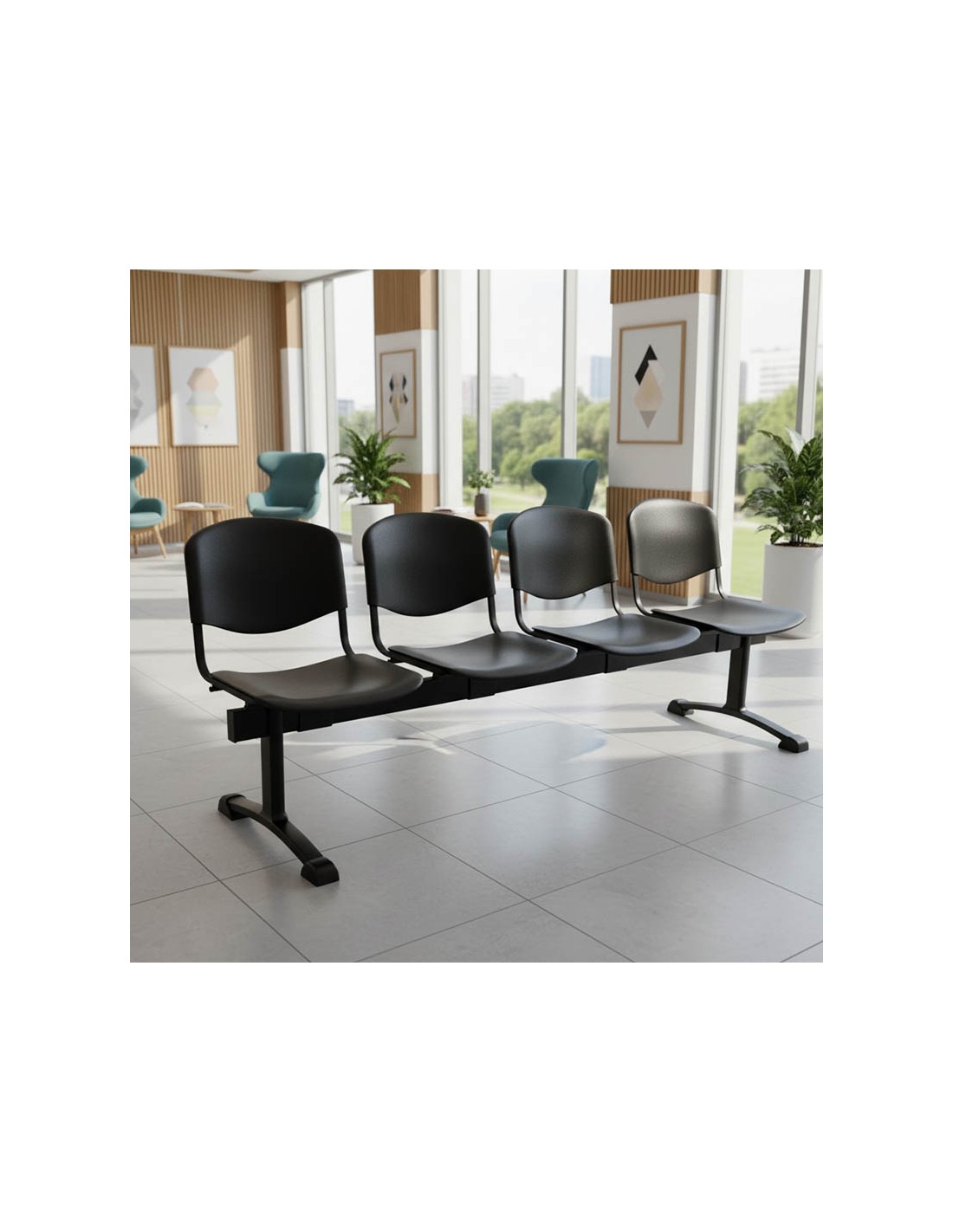 La Bancada Haley de 5 Plazas es la opción ideal para recepciones amplias, salas de espera y entornos profesionales con alto tránsito.