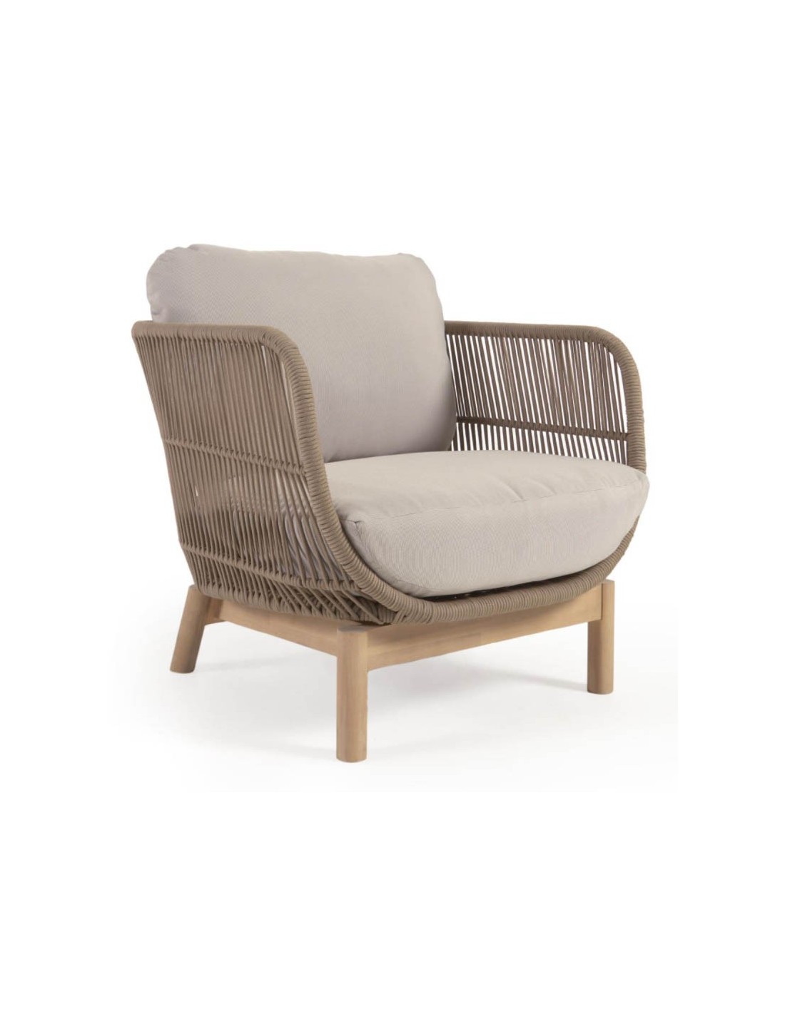 La Butaca Yeti, con su diseño único de madera de acacia y cuerda trenzada, es la incorporación perfecta tanto para interiores como exteriores, aportando un aire tropical a cualquier espacio.