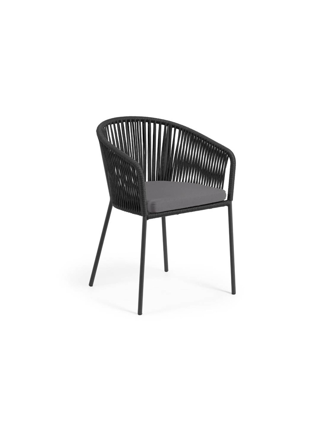 Sillón con su asiento de cuerda trenzada y diseño versátil, aporta un estilo relajado y chic a cualquier espacio exterior cubierto.