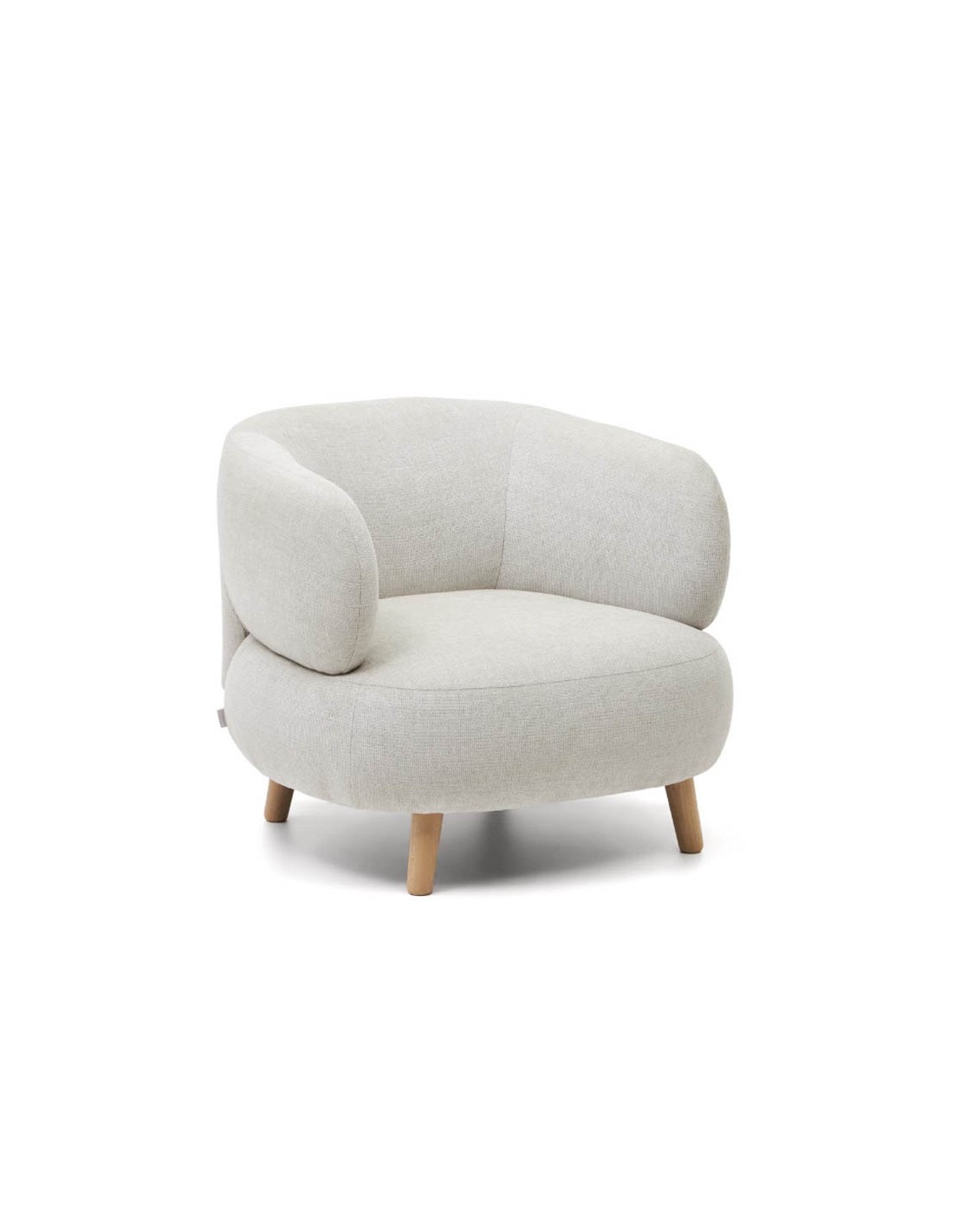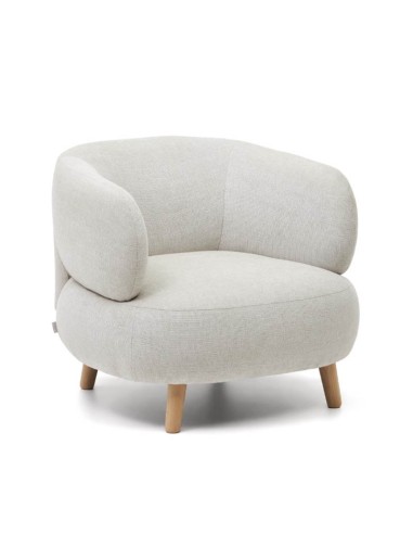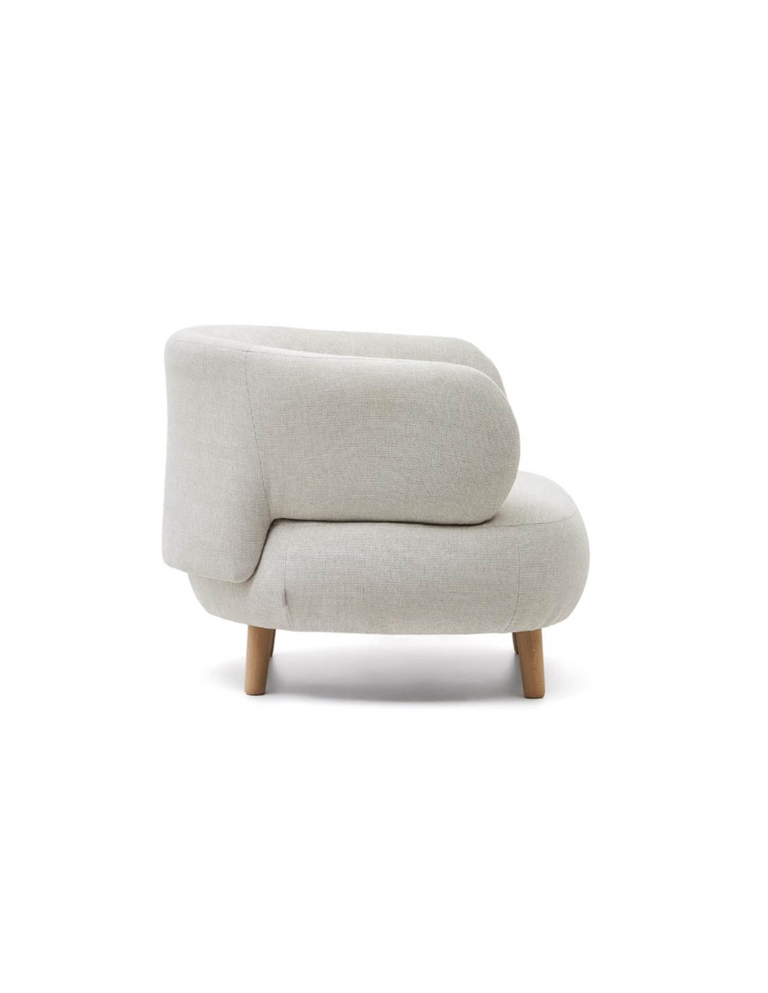 La Butaca Blandina, con sus tonos grises y beige y patas de madera de caucho, ofrece una mezcla perfecta de confort y estilo para tu salón.