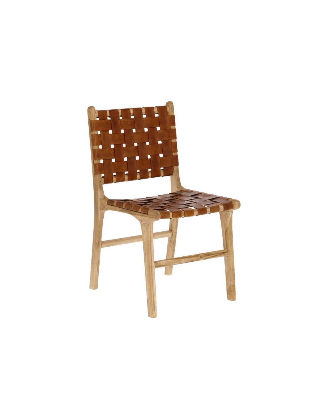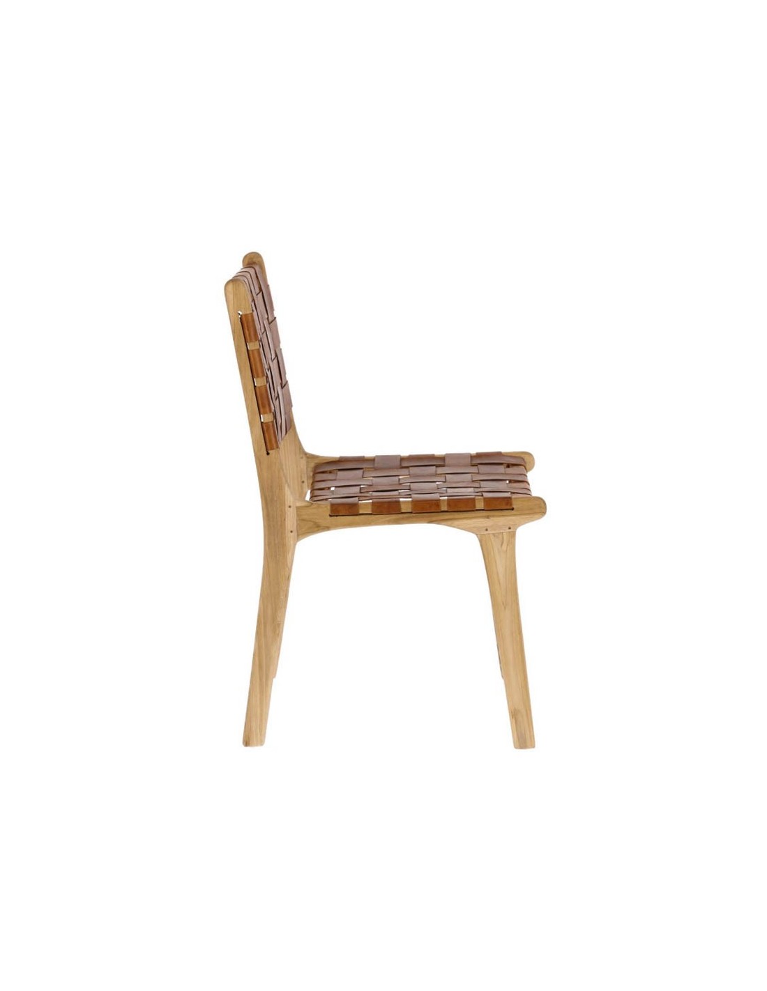 Sillón hecho de madera maciza de teca y piel, ofrece un refugio de confort y estilo natural, perfecto para interiores.