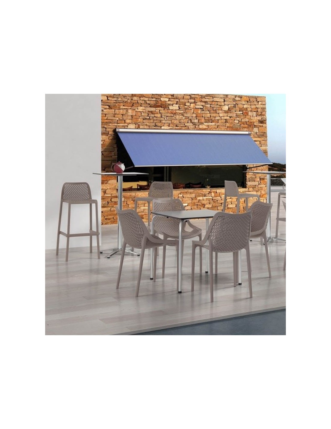 El Taburete Beatriz, con su diseño en polipropileno reforzado con fibra de vidrio y tratamiento anti UV, es ideal tanto para interiores como exteriores, ofreciendo durabilidad, estilo y confort.