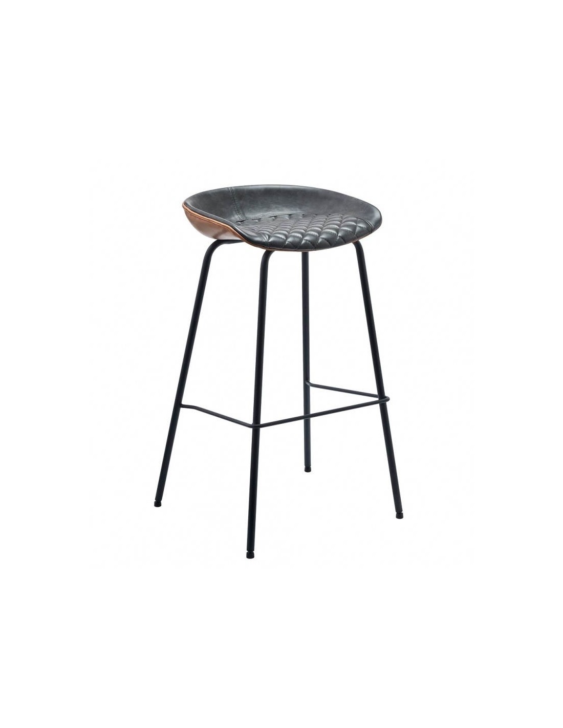 Su armazón metálico, finalizado en un profundo negro, proporciona una base sólida y un contraste perfecto con el asiento tapizado en similpiel. La opción de un exterior en cuero marrón con interior en negro de rombos añade una dimensión de diseño único, mientras que las variantes en similpiel marrón claro y negra ofrecen versatilidad para adaptarse a cualquier decoración interior. Perfecto para añadir un toque de sofisticación a tu cocina, barra o área de estar, el Taburete Aparición no solo es una pieza de decoración, sino también una expresión de tu estilo personal.