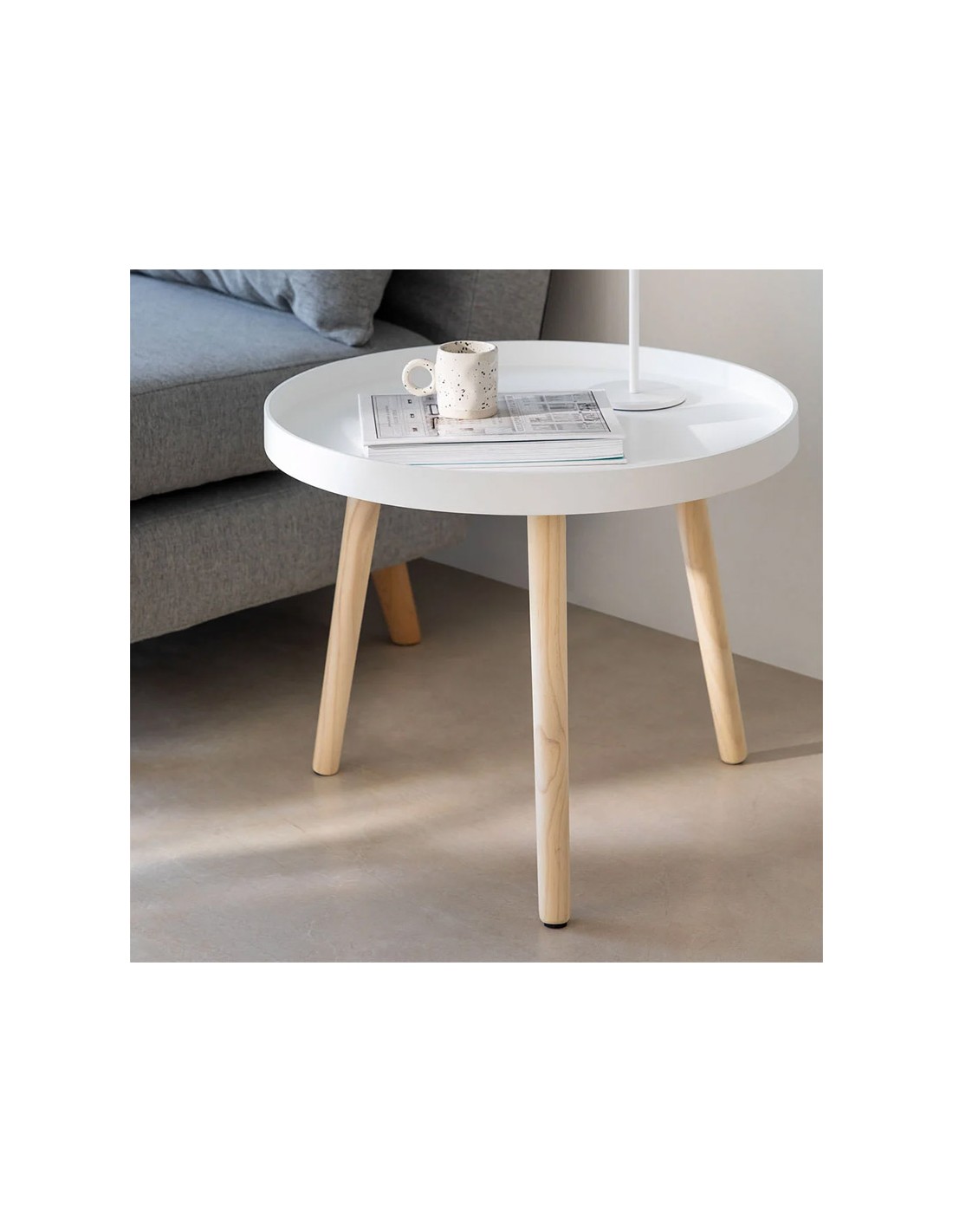 Con un diseño nórdico que combina un cuerpo de MDF y patas de madera de pino, esta mesa aporta calidez y naturalidad a la estancia. Es ideal para colocar al lado del sofá en el salón o como mesita de noche en el dormitorio. Su estilo sutil y sobrio encaja perfectamente en cualquier ambiente decorativo. Además, su tablero con borde asegura que los objetos colocados encima permanezcan seguros.