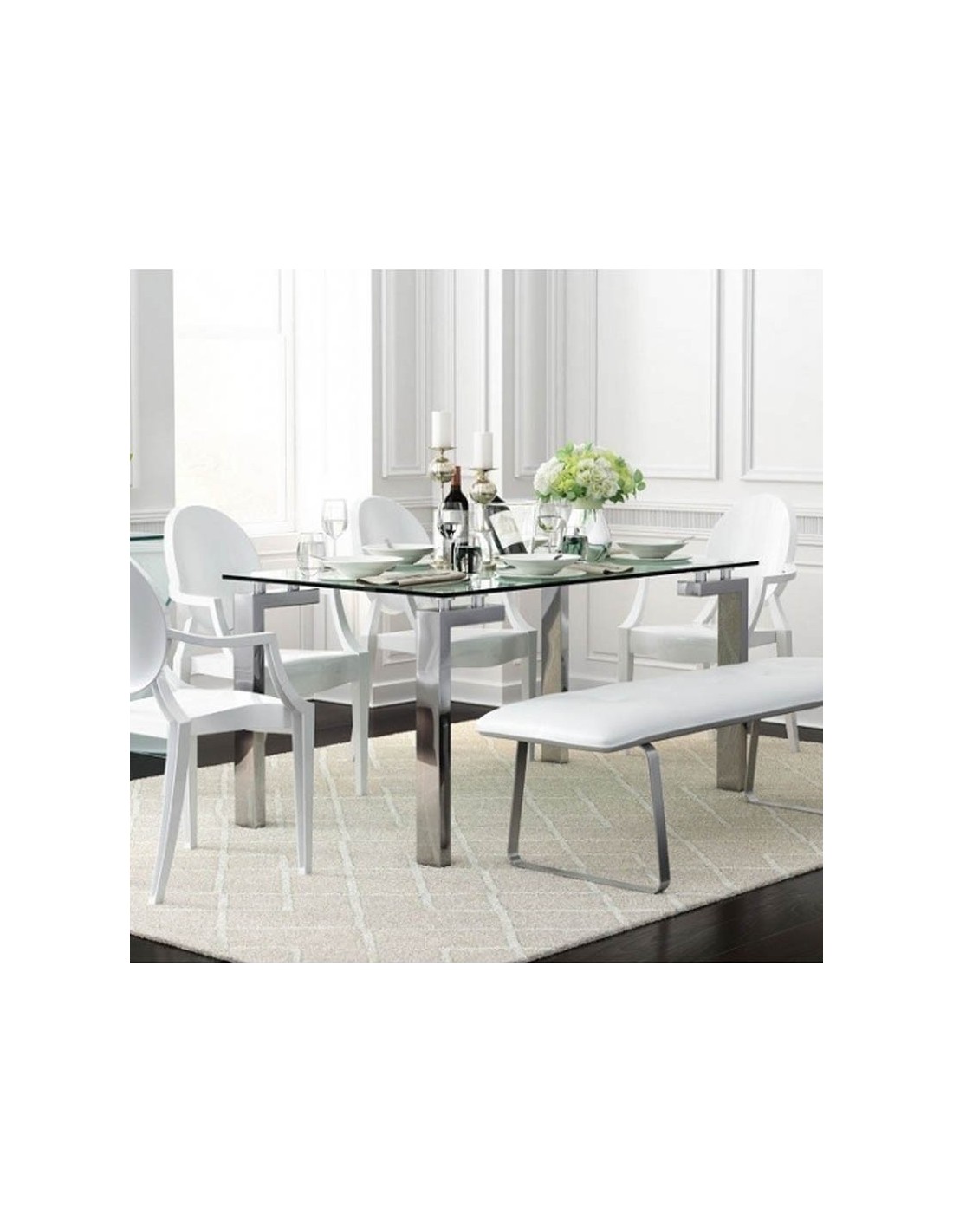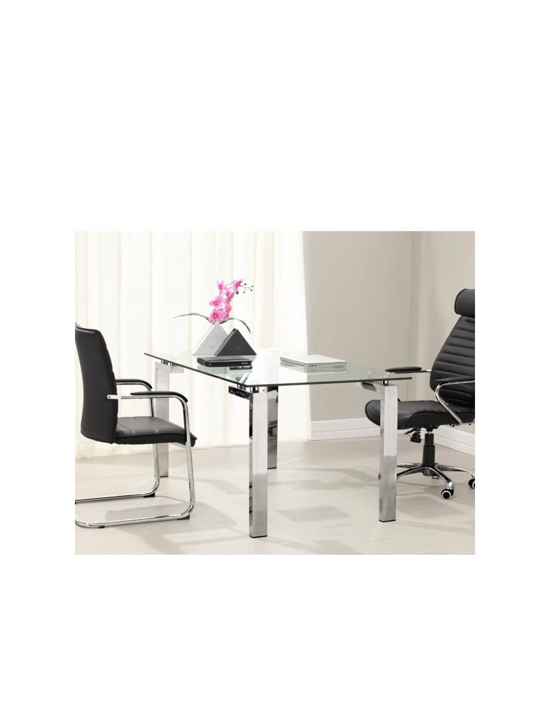 - Transparencia y Ligereza: El cristal transparente permite que la mesa se integre de manera discreta en cualquier espacio, manteniendo una sensación de amplitud.