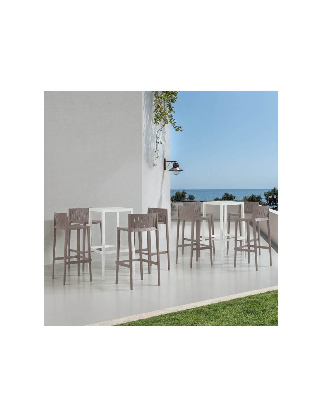 La Mesa Cecilia es una mesa alta de diseño que combina funcionalidad y estilo en una pieza apilable, fabricada en polipropileno reforzado con fibra de vidrio.
