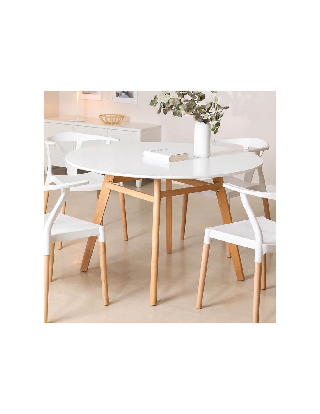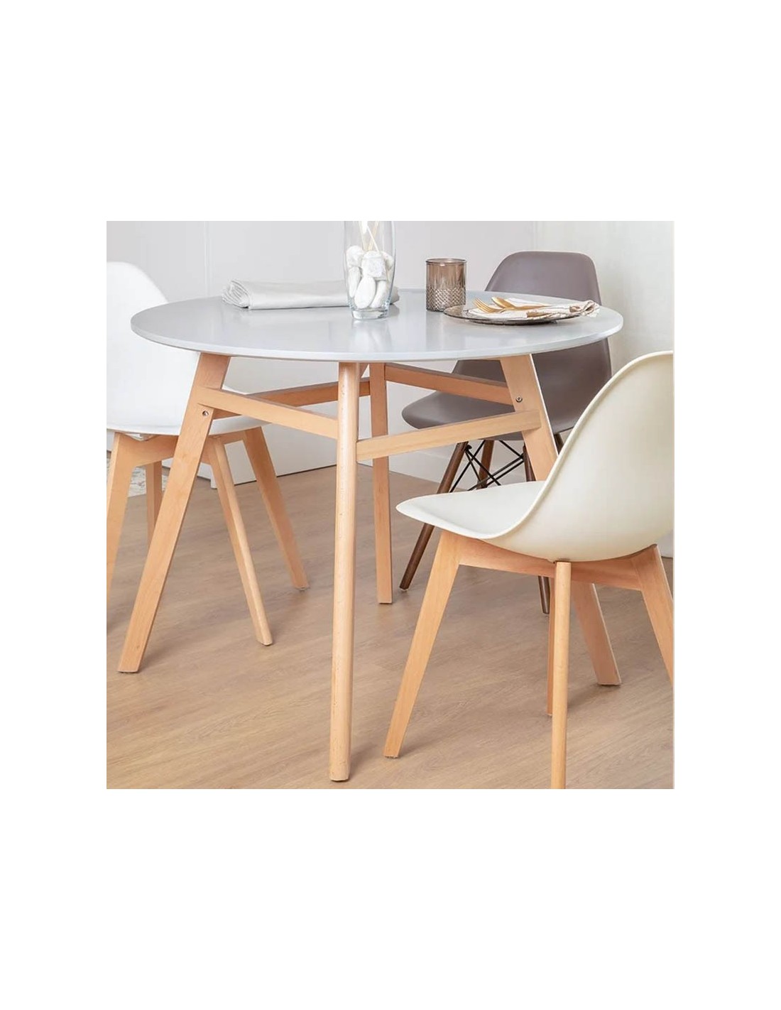 Descubre la Mesa Clemente MDF, una mesa de comedor redonda en MDF y madera de haya. Elegante, resistente y perfecta para cualquier comedor o cocina.
