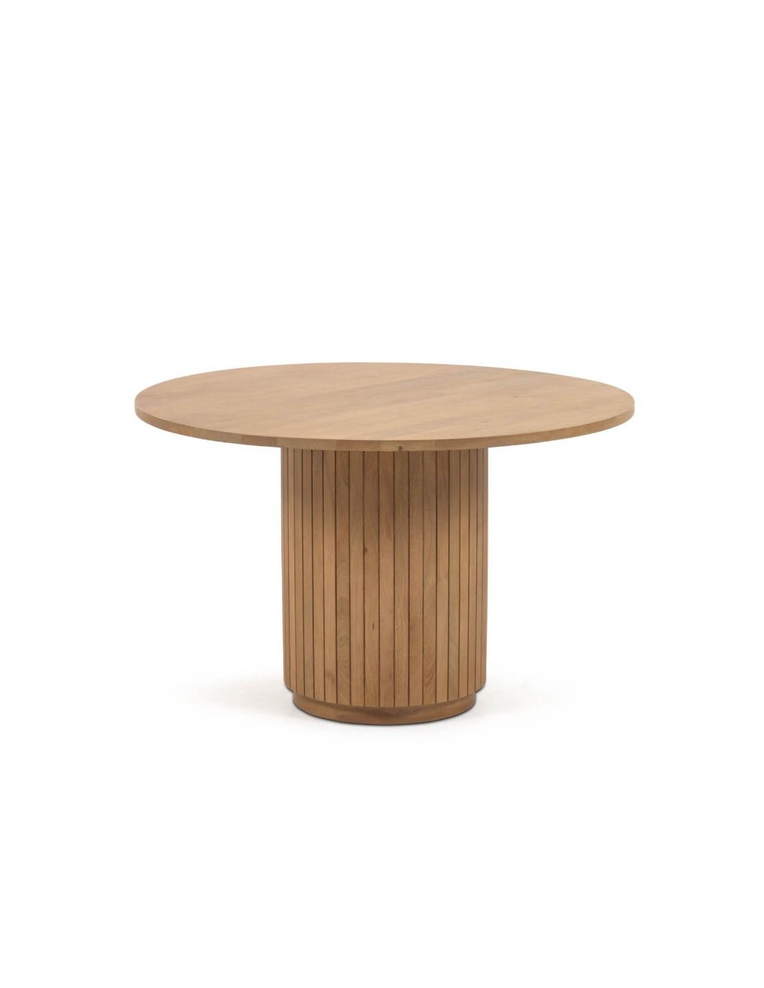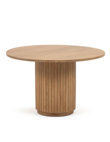 Mesa Diega R: Elegancia Redonda en Madera de Mango Sostenible