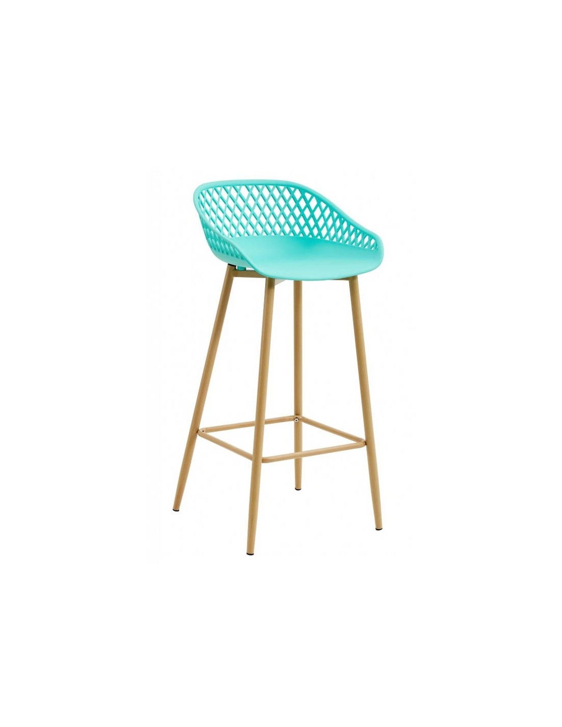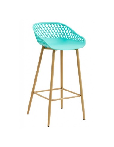 Sillón con base metálica imitación madera y asiento de polipropileno en colores pastel, es ideal para interiores y exteriores protegidos.