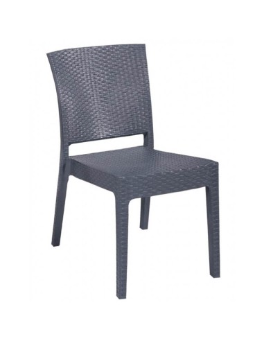 La Silla Epaminondas es una opción multiusos y resistente, fabricada con polipropileno reciclable. Su apariencia de imitación a ratán y su durabilidad hacen que sea ideal para interiores y exteriores