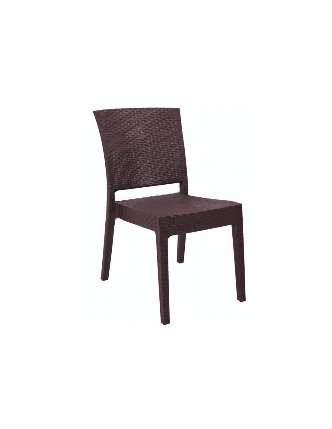 Descubra la Silla Celene, apilable y fabricada en polipropileno marrón chocolate, con un elegante acabado imitación a rattán. Perfecta para uso en interiores y exteriores, con opciones de otros colores disponibles bajo pedido. La cantidad mínima de compra es 4, asegurando...