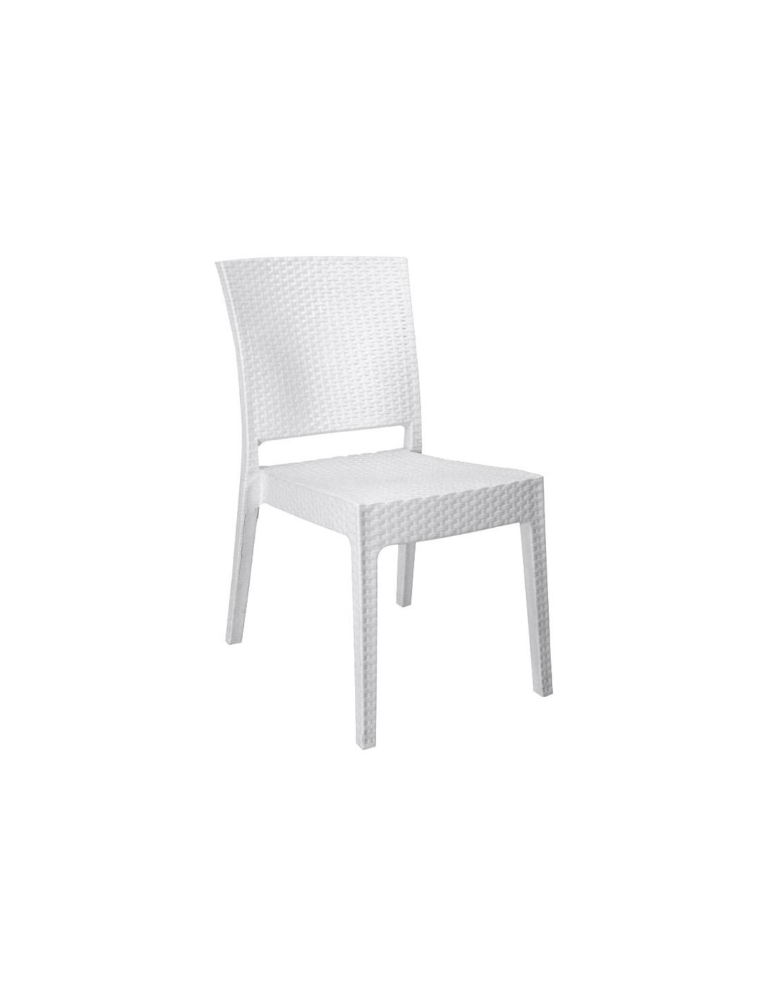 La Silla Epaminondas es una opción multiusos y resistente, fabricada con polipropileno reciclable. Su apariencia de imitación a ratán y su durabilidad hacen que sea ideal para interiores y exteriores