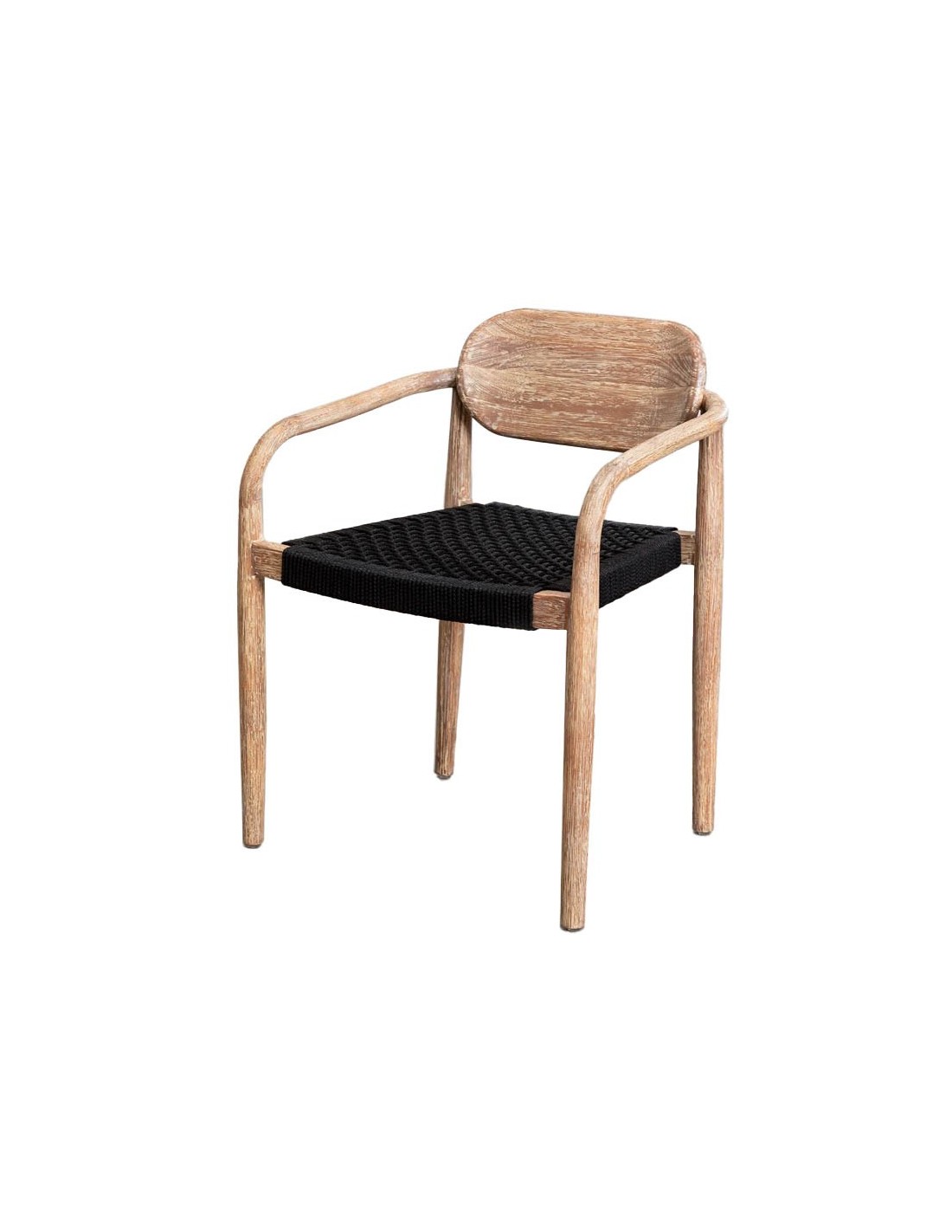 El Sillón Ercilia, con asiento de cuerda trenzada y reposabrazos, combina la elegancia del eucalipto con un diseño artesanal para interiores y exteriores.